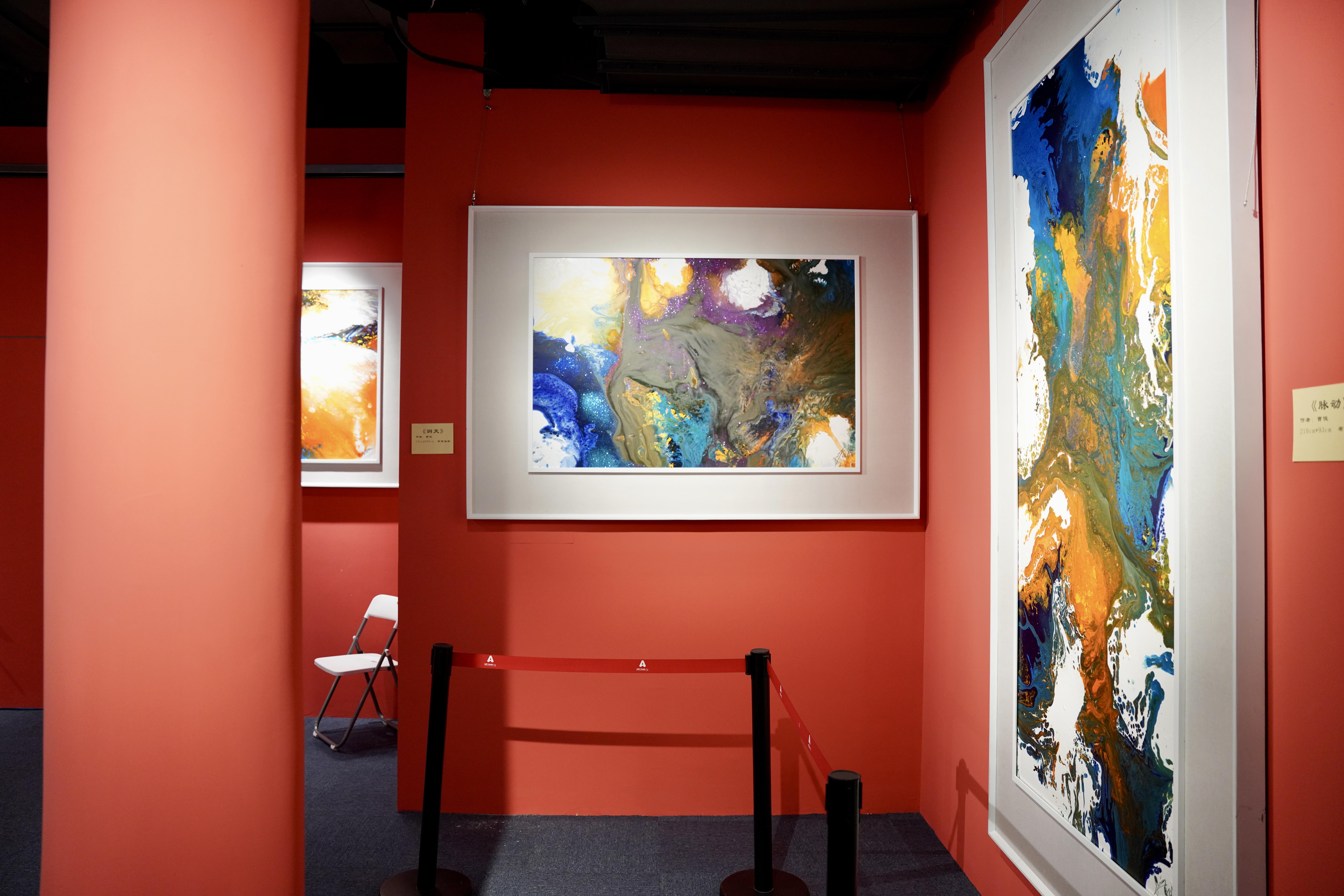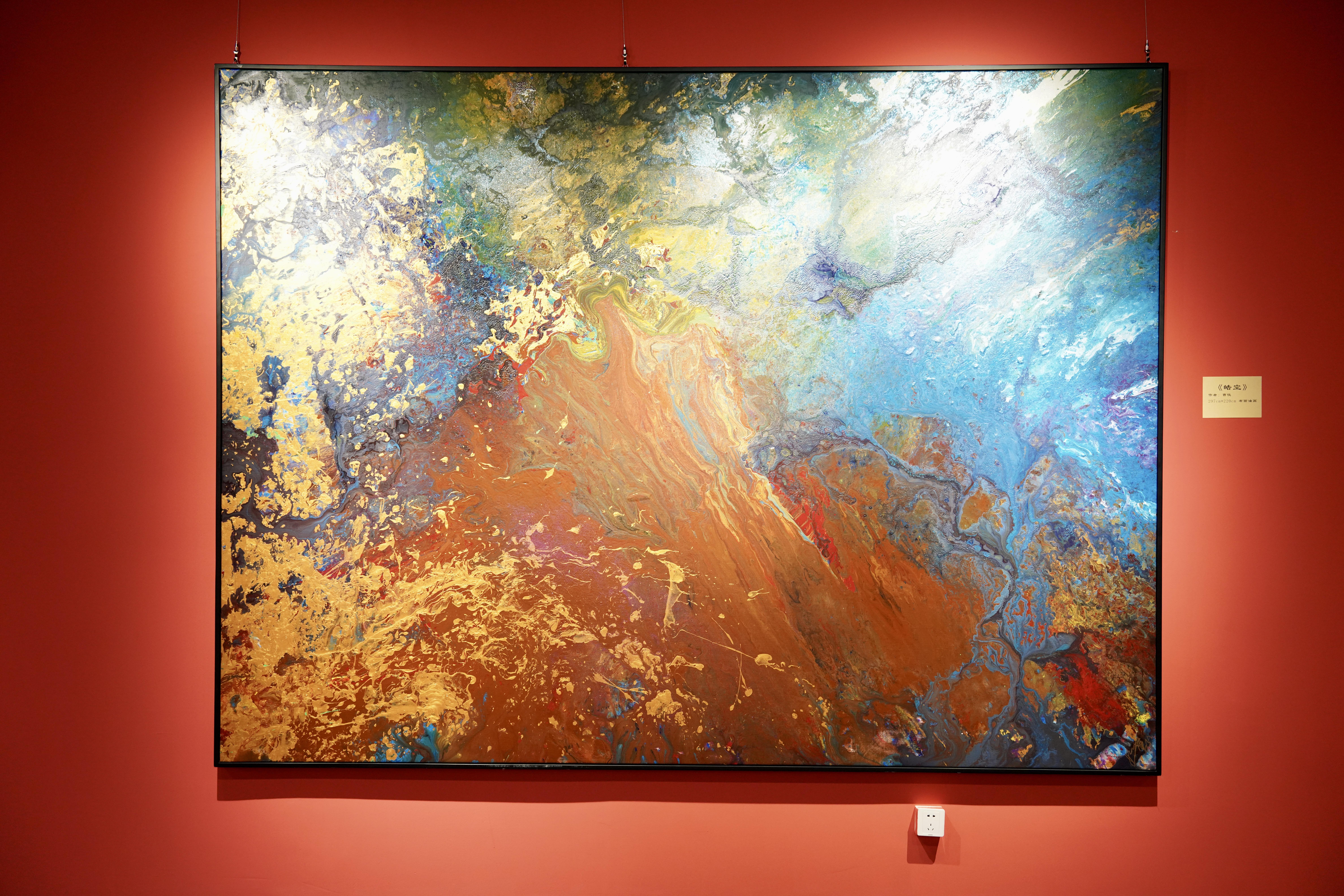 展出的近50件作品中,既有《山海千万里》这类表现中国古典审美的“新宋式”绘画,也有传统的中国水墨画、工笔画、和泼彩画;有着强烈视觉冲击兼具泼墨与撞粉技法的金笺纸设色“荷系列”作品《荷语凝香》、布面油画《鎏金溢彩》等,更有从高空视角俯瞰地球,表现宏大自然景观的“宇宙系列”作品《皓空》《极地之鸣》等。他畅快地使用颜色,画作自然流畅,尽显浩荡奔腾的灵动之美,向世界传递他对于真善美的理解。