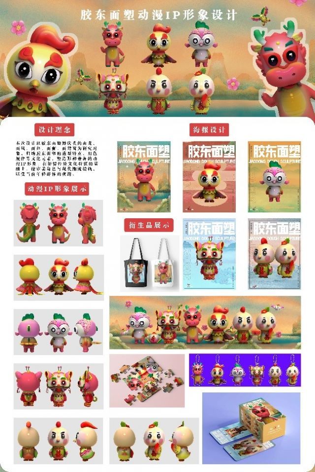由山东省文化和旅游厅、山东省教育厅主办的第九届“青未了——山东省高等学校美术院系应届毕业生优秀作品展”评选结果公示,烟台南山学院艺术与设计学院视觉传达设计系学生孙玉霖作品《“百变泼伊”IP形象设计》、鞠宏鹏作品《胶东面塑动漫IP形象设计》入选本次展览。