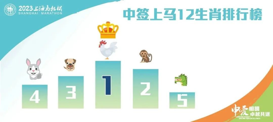本届中签跑者中脱颖而出的生肖是属相鸡的宝宝。属兔的本命年跑者也不甘示弱,积极跑马,勇跃上榜了。