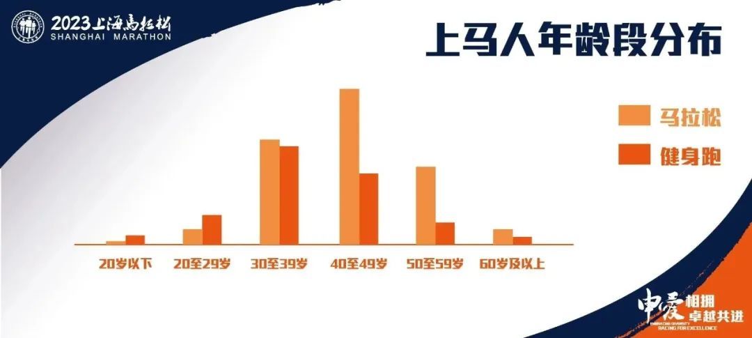 越来越多不同年龄段的跑者加入上马大家庭,全马项目中,40-49岁的跑者成为本届上马主力“卷王”。上马第一梯队人群30+大军在全马项目中抱憾第二,但在今年的健身跑项目中中签人数位列第一。值得一提的是,报名今年全马项目60岁以上的人数将近600人。