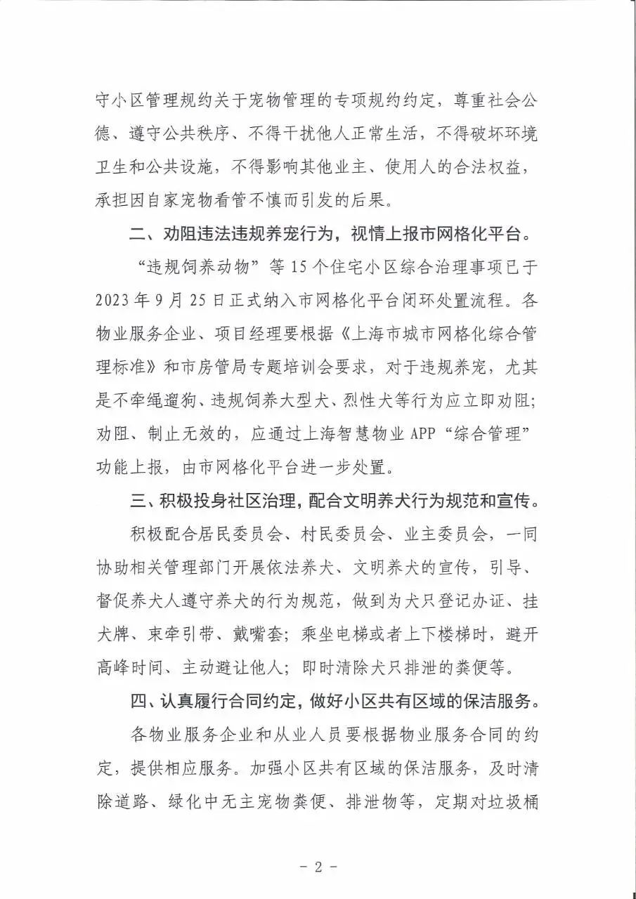 记者从市房管局获悉,全市住宅物业服务企业在认真开展物业服务同时,应积极配合属地公安、城管、居(村)委员会、业委会开展文明养犬工作,维护住宅小区公共秩序和环境卫生,维护业主居民安全、幸福、文明的生活环境,进一步防范违规养宠引发的各类风险隐患等。同时,市民如遇不文明养犬现象,也可以通过相关途径进行取证、举报。