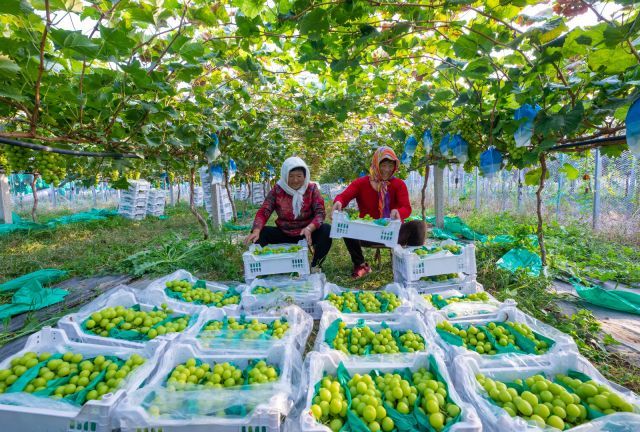 该合作社种植了约8亩地的“阳光玫瑰”葡萄,今年1亩地的产量约为5千斤 ,总产量达到4万斤左右。福山区位于北纬37度,是葡萄生长的黄金地带。这里“阳光玫瑰”葡萄口感独特,甜美多汁,果肉细腻且无籽无渣。其香甜度和果肉质感均属上乘,被业内人士誉为“果中新贵”。