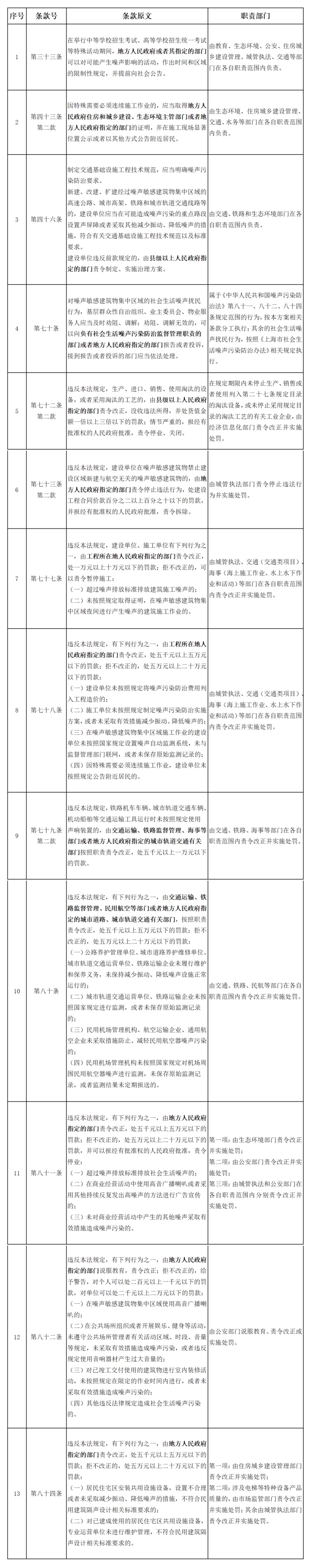 点击阅读原文,查看《上海市生态文明建设领导小组办公室关于印发〈《中华人民共和国噪声污染防治法》部分条款部门职责分工方案〉的通知》(沪生建办〔2023〕13号)