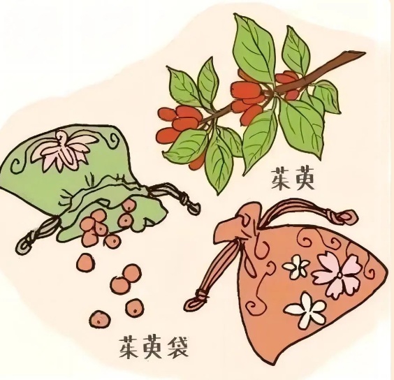 古代流行在重阳节把茱萸戴在手臂上或者插在头上,是认为能辟邪消灾,王维有经典名句“遥知兄弟登高处,遍插茱萸少一人”,李煜也有词“又是过重阳,台榭登临处,茱萸香坠”。