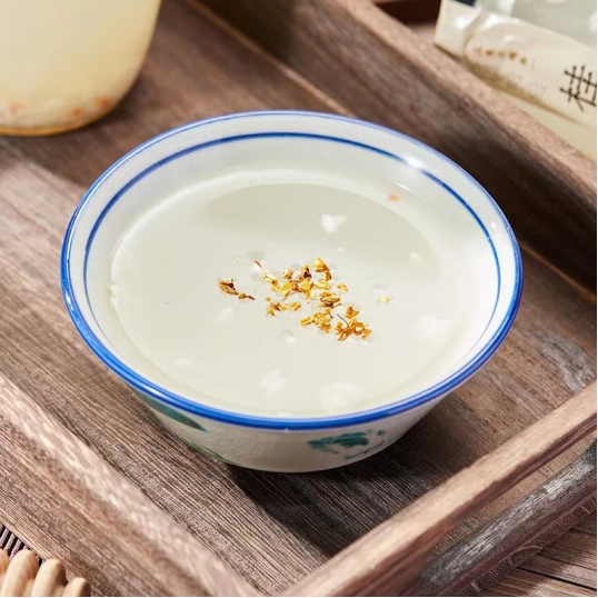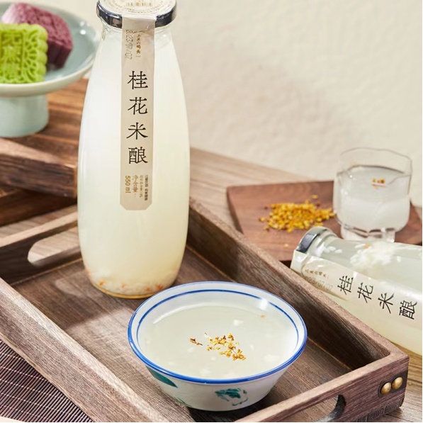 由纯天然的桂花和米酒酿制而成,一股天然的桂花味,清香优雅,余味不绝。
