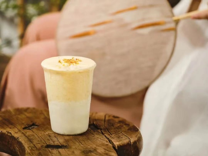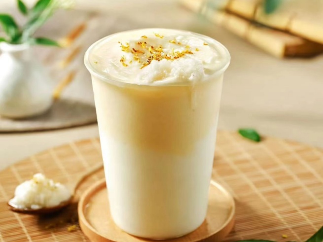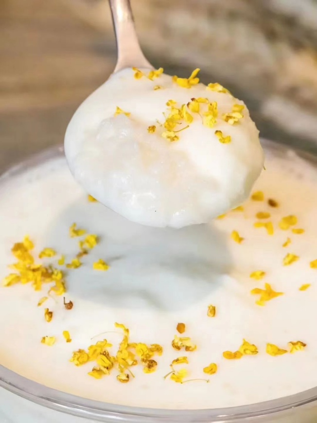 源自新鲜干桂花的桂花原浆被灌入宝珠奶酪中