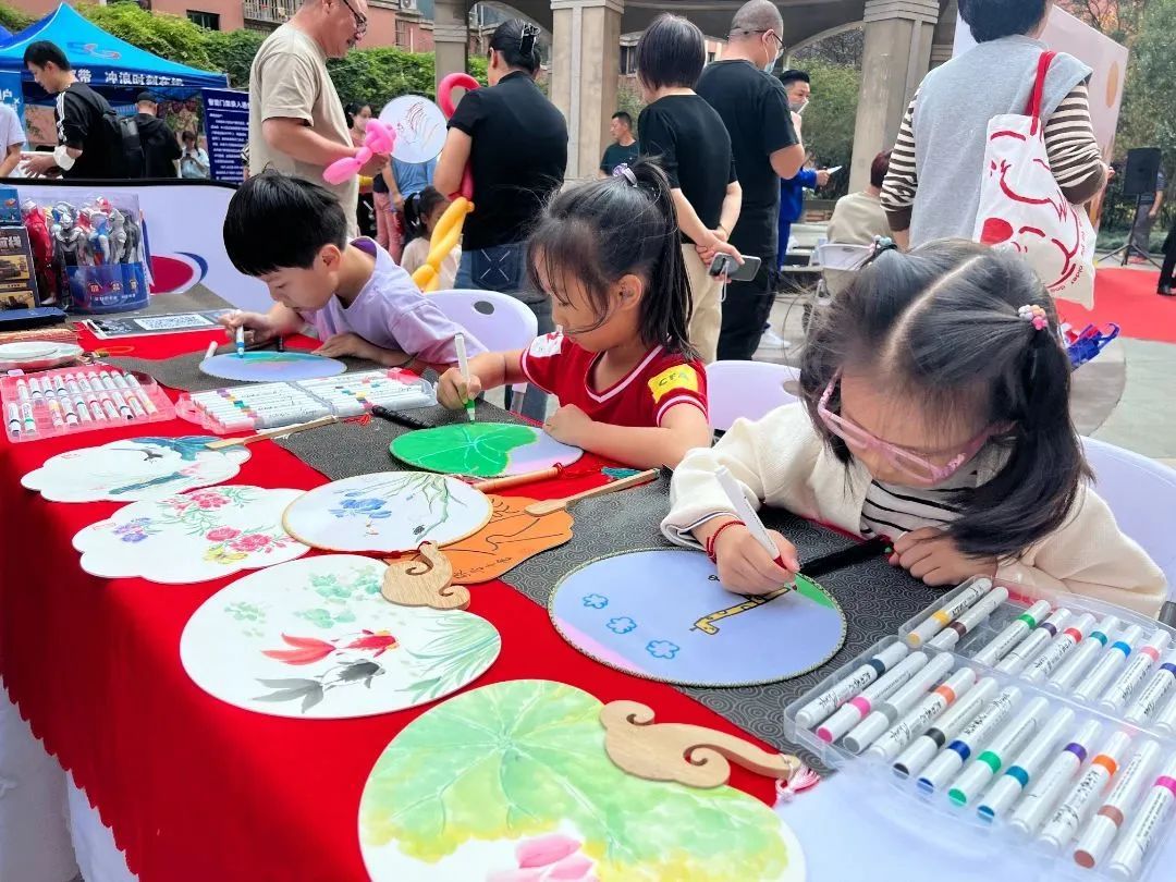 现场还设有传统糖人、棉花糖制作、团扇绘画、棍网球体验等项目,深受小朋友喜爱。