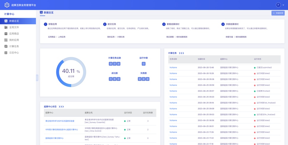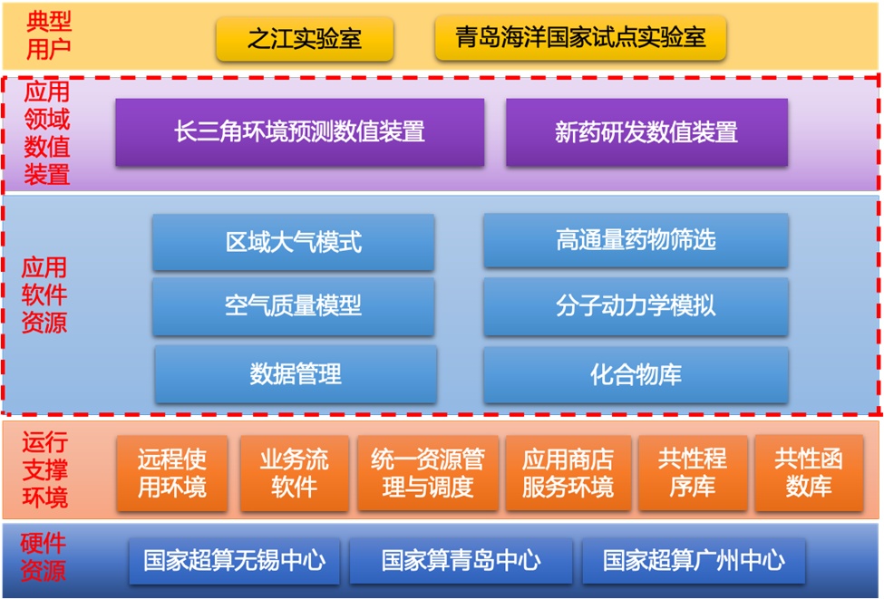 国家超级计算无锡中心与之江实验室合作研发“超算互联网系统集成与服务平台构建及应用”项目,面向未来新型科学计算应用和人工智能应用的大算力需求,构建算力充足、核心应用明确的“一网、一环境、一平台、一体系”(一网:超算互联网,一环境:超算互联网运行支撑环境,一平台:支持超算从单中心提供单纯机时服务向跨中心提供应用装置服务转变的应用平台,一体系:支撑超算互联网及领域数值装置应用的超算互联网标准体系),为国家实验室等大型研究机构提供超大算力支撑的超算互联网科研基础设施,为国家“东数西算”战略提供有益探索和先行示范。