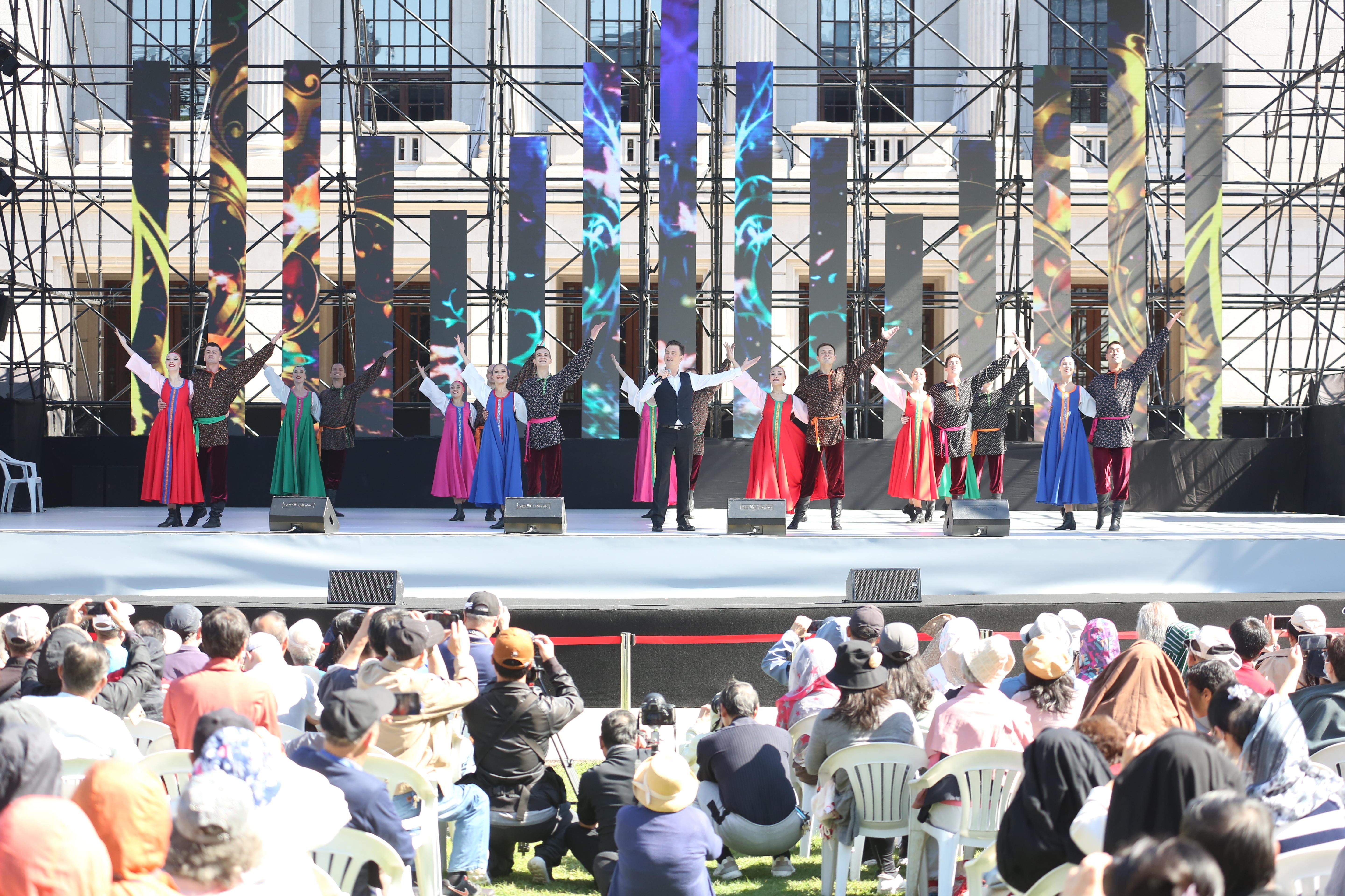 上午十点,上海音乐厅前的草坪上,响起了激昂的乐声,充满俄罗斯风情的歌舞表演奏响了本次“秋之韵”的序曲。