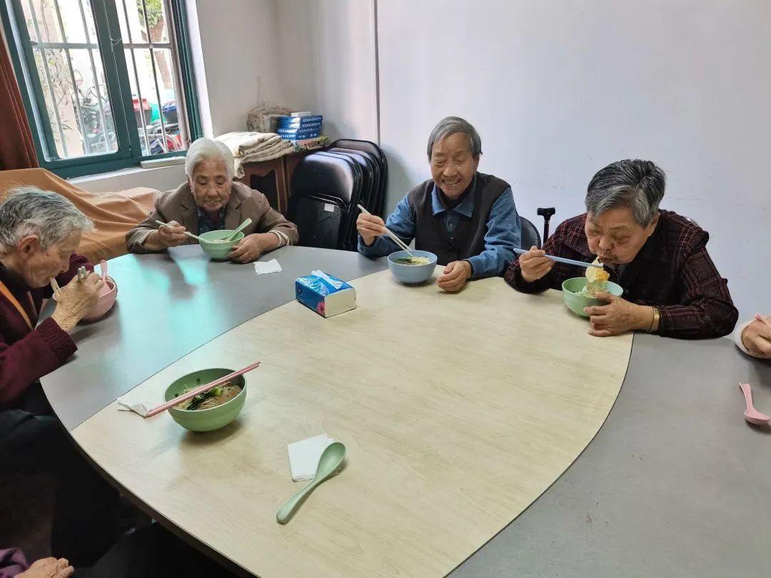 “好吃!”“哈灵!”在清八日间照料中心,长者们围坐一桌,工作人员将一碗碗鲜香浓郁的长寿面端到老人们的手中,新鲜出锅的面条,搭配荤素齐全的浇头,都是按照老人们的喜好精心准备,老人们大口大口地吃着,仿佛眼前的是美味珍馐。一碗长寿面,虽平凡朴素,却装满了长者们的欢笑和情谊,饱含了工作人员对长者浓浓的爱意和祝福,如同在中心每日下午茶的欢聚时光,快乐又满足。