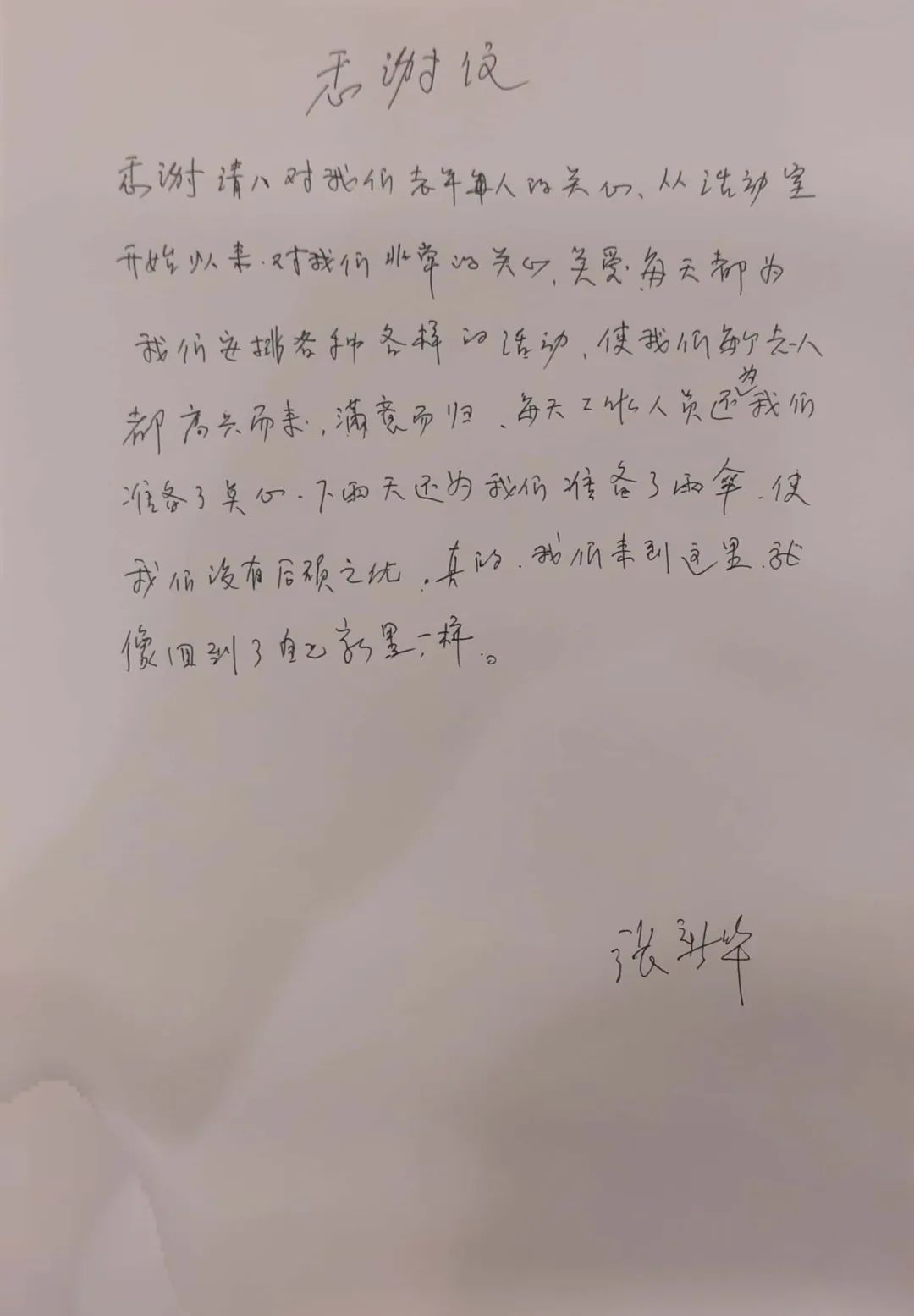 “工作人员照顾我们非常用心,每天为我们准备点心、手工艺品,让我们有吃有乐。”“下雨天,中心为我们准备雨伞,让我们没有后顾之忧……”信中朴实的文字里,处处流露着真实的感情和对社区及工作人员的感激之情。