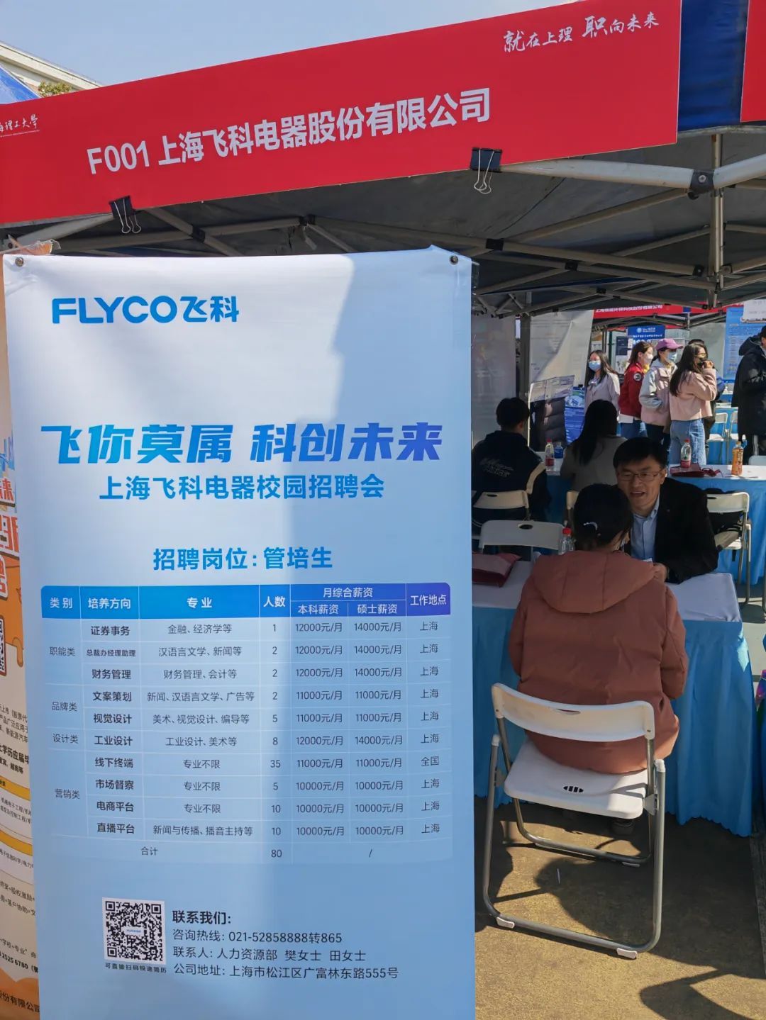 在区人社局的协助下,飞科电器充分运用区内的资源优势以及与各大高校的紧密合作,定制了以“飞你莫属、科创未来”为主题的小型校园招聘方案。同时,区人社局与松江大学城各高校以及同济大学、上海大学上海电影学院等高校就业工作负责人建立了微信对接群,针对飞科电器校园招聘岗位进行深入剖析,为飞科电器定向推荐各高校的优秀毕业生。