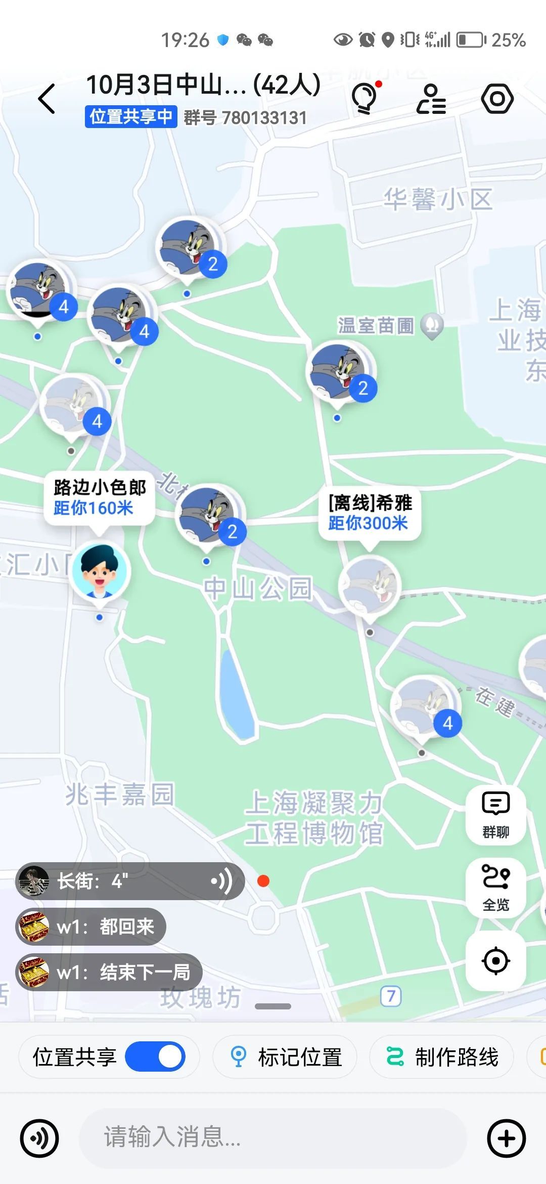十一长假期间,中山公园有一场晚间躲猫猫活动。当天,群里共有几十位玩家。通过抽签选出3只猫(负责捕鼠),2位NPC(负责给老鼠做任务获得各种功能卡),其余则是老鼠(一旦被抓,会变异成猫)。