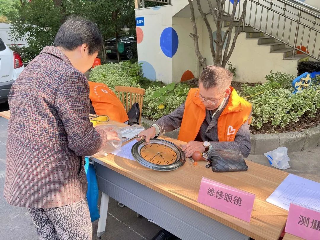一大早,户外广场就聚集了许多前来参加活动的社区老人,凯旋片区为大家带来的便民服务活动受到了大家的热烈欢迎。本次便民活动邀请志愿者为大家提供修表、修眼镜、修理家电、缝补、磨刀等日常服务,也有免费测血压、血糖等健康检查服务,还邀请了专业医生为大家开展健康咨询,现场的每一个点位前都十分热闹,大家有秩序的排队等候服务。