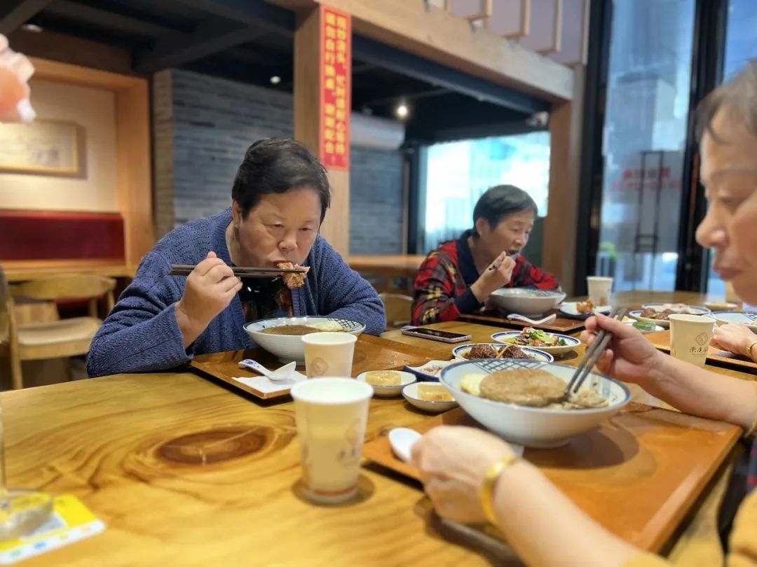 随着老年“食客”们全员到齐,一道道菜送上餐桌,大家交换菜色,边吃边聊,不亦乐乎。记者了解到,来到面馆里堂吃的老人们都是活力老人,常年活跃在社区志愿服务工作中,与邻为善、与邻为伴。张慧娣阿姨就是其中之一。“味道很灵的!尤其这个肉圆,烧得很入味,让人吃了还想吃。”张阿姨说,“我们很感谢居委会和这家面馆,时刻牵挂着我们,很开心。”