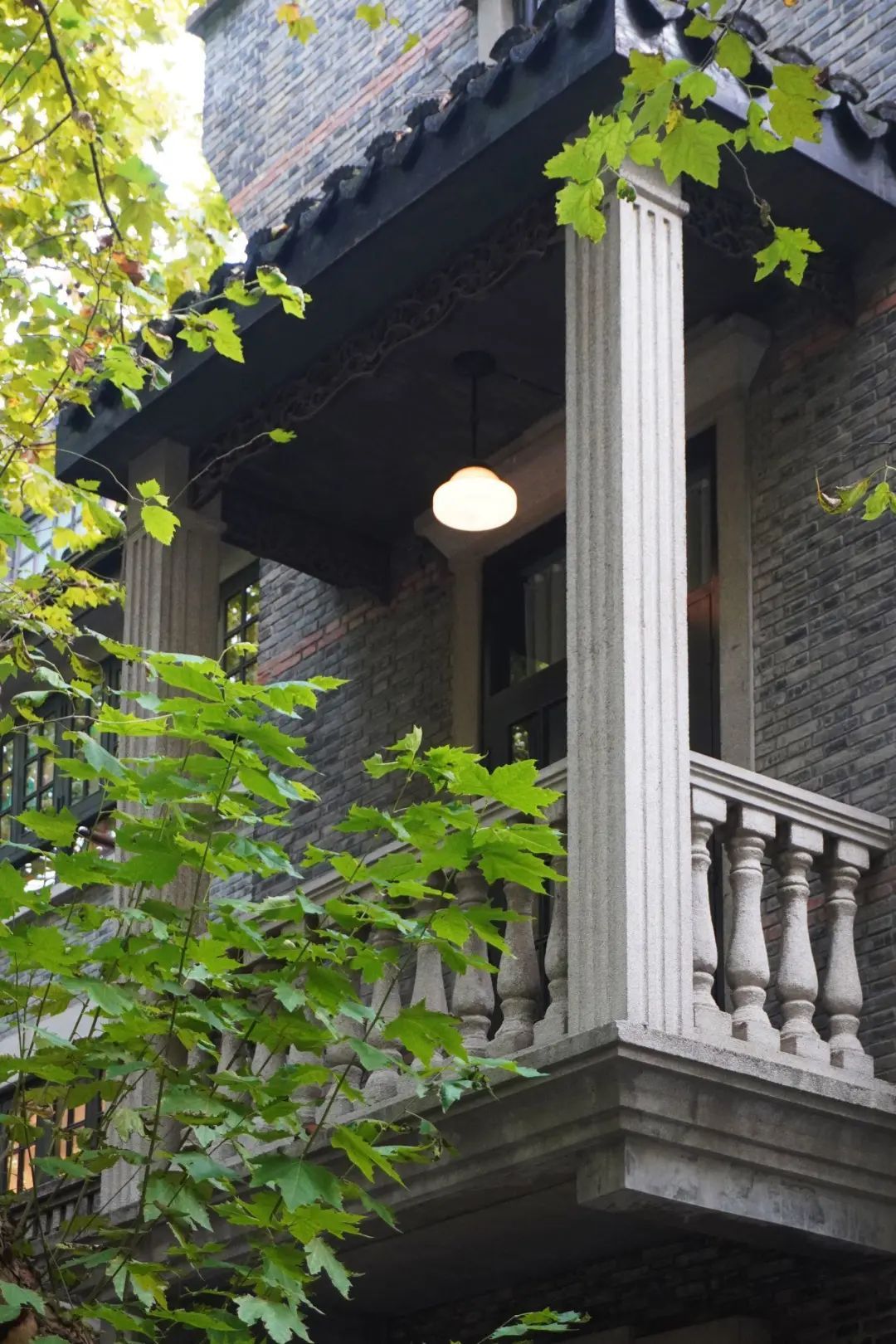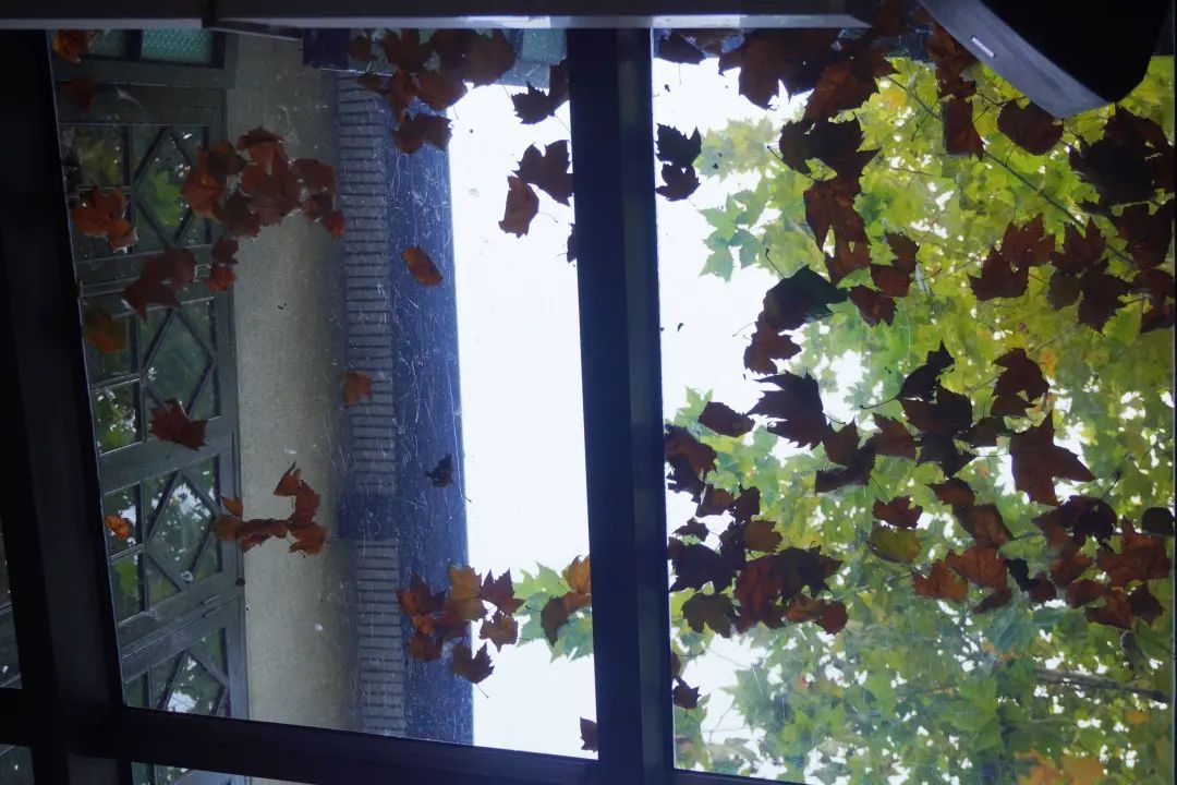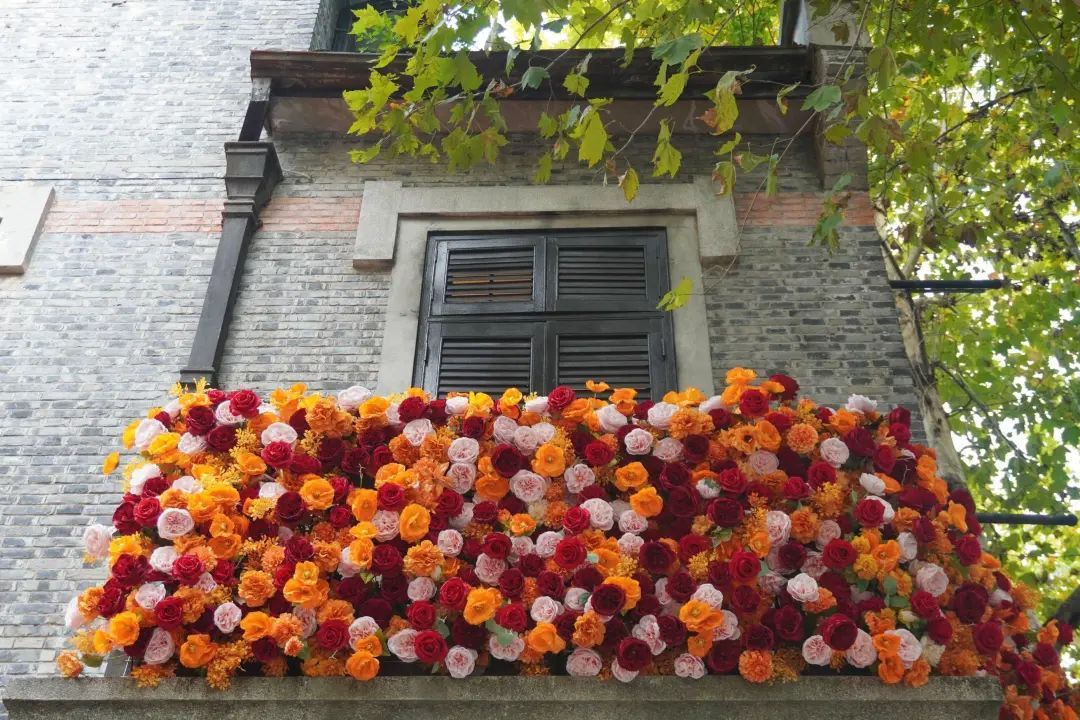 当落日洒在石库门的墙壁上,秋天就变成了一位调色大师,为老房子增添了复古气质。影影绰绰的叶子就像墙面的浮雕,灵动而又立体;门楣上的镂花在忽明忽暗的日光的衬托下,精致得像古代女子出嫁时戴的凤冠。