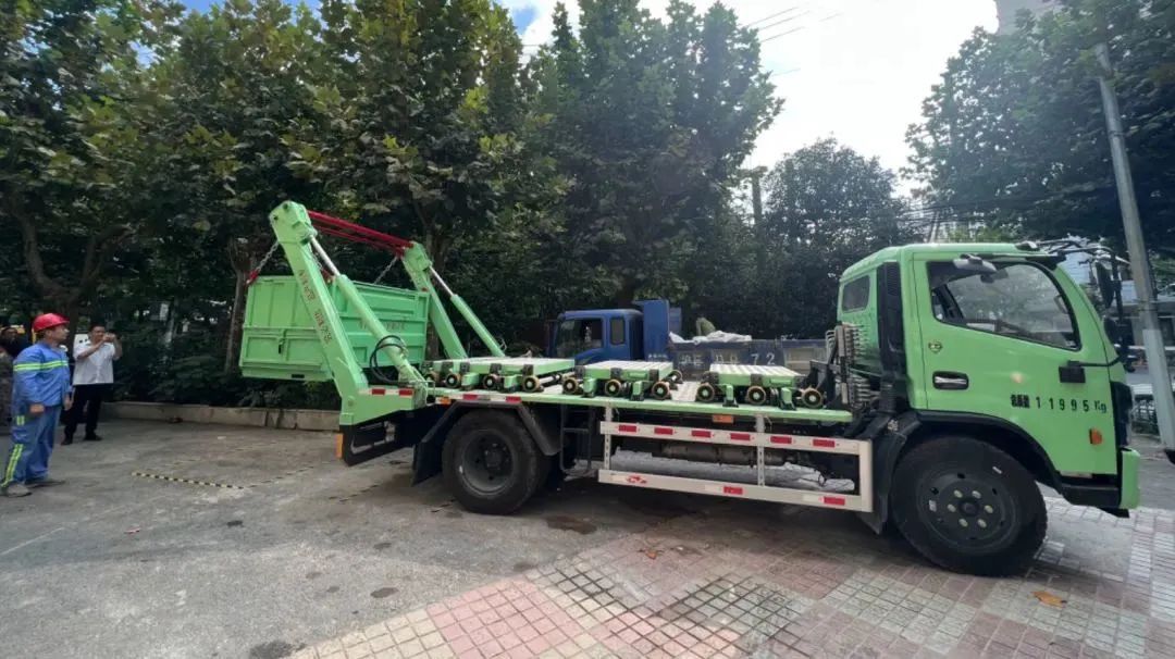 与此同时,街道还在辖区内的三鑫花园进行居民区试点。三鑫花园实行人车分流,小区环境整洁,但装修垃圾露天堆放始终是小区环境治理的难题。街道提出“装修垃圾不落地”的要求后,小区业委会及物业公司积极响应落实,引入“预约式箱体清运”。物业公司告诉记者,“如此一来,原本垃圾堆放点也可以改建成公共休闲区域,让居民更有获得感。”