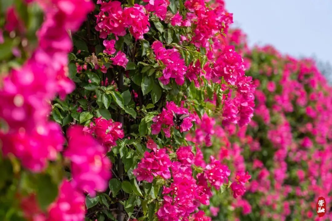 金秋十月,风景如画。东平国家森林公园正在举办上海红花节,此时的公园,三角梅花开正艳,枫叶次第变红,呈现出秋季独有的浓烈色彩。跟着小编一起探寻“秋日限定”美景,感受花红之美。芳草地上,两米高的柱形三角梅盆景摆成一排,显得格外壮观。走近细看,粉红色的花朵透着柔美,婀娜多姿,灿若云霞;紫色的花朵明艳夺目,绚烂绽放,热情似火。