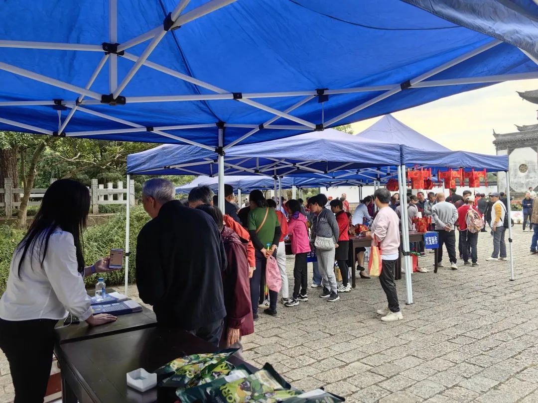 舞台边上,还有爱心义卖、亲子活动、智能手机教学、健康义诊等摊位为游客提供便民服务。