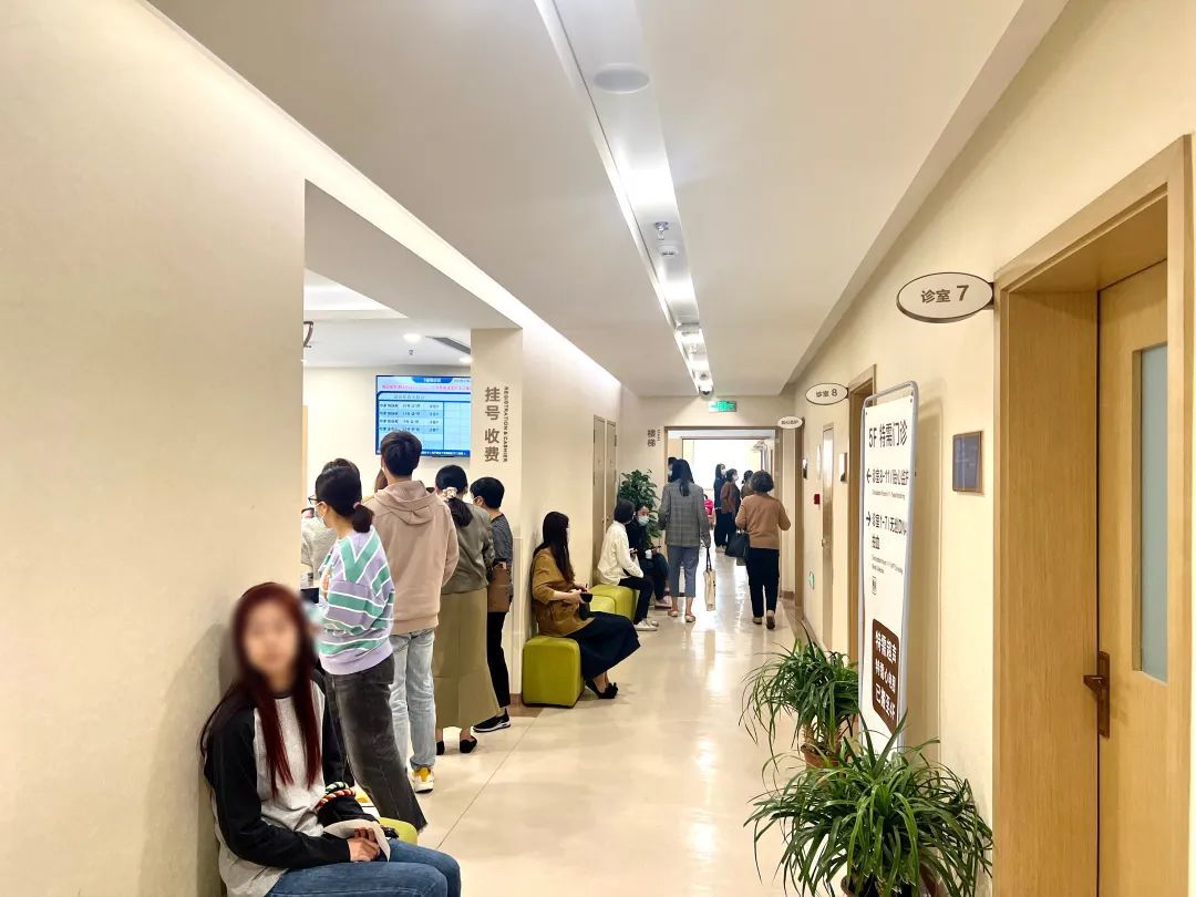 10月22日,记者在位于静安区的一妇婴(西院)注意到,在该院区门诊五楼大厅,预约前来问诊的患者络绎不绝。