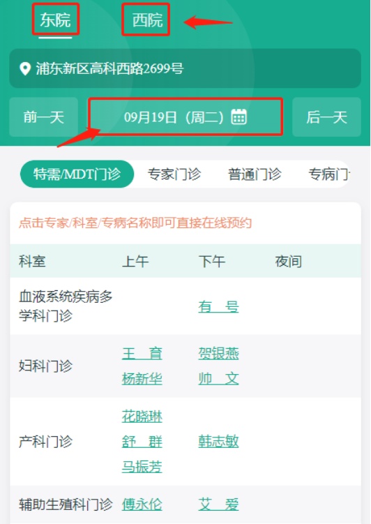 2.点选下图红框中的区域,选择相应的日期(周六、周日均已开放门诊)