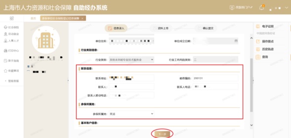 修改单位联系地址和邮政编码,调整单位“参保所属地”。