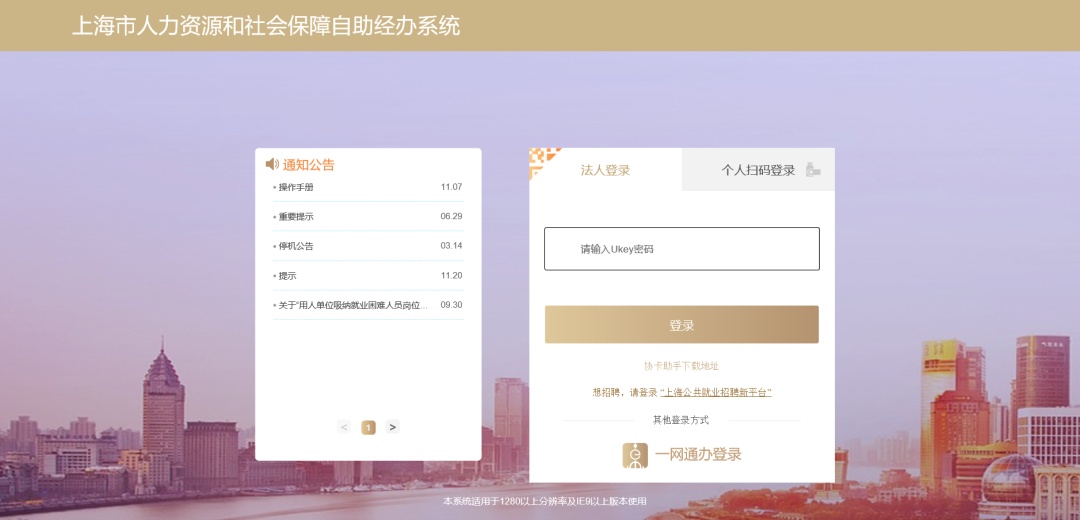 登录上海市人力资源和社会保障自助经办系统(网址:https://zzjb.rsj.sh.gov.cn/zzjbdl/)。