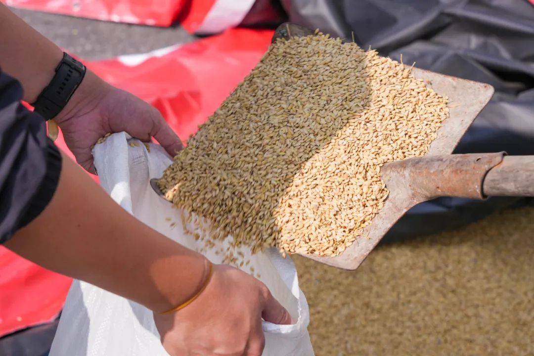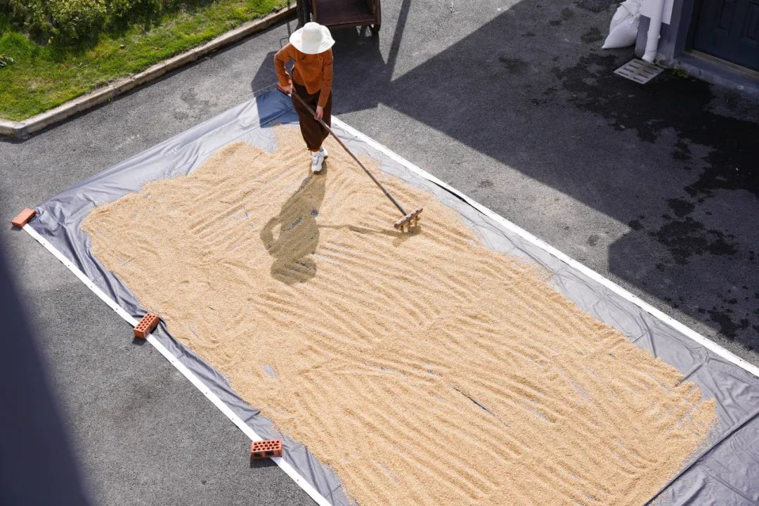 一袋袋沉甸甸的谷子被拉回家,还要找一块空地把谷子摊平暴晒。晒得过程中需要一遍一遍翻,直到全部晒干再装起来。