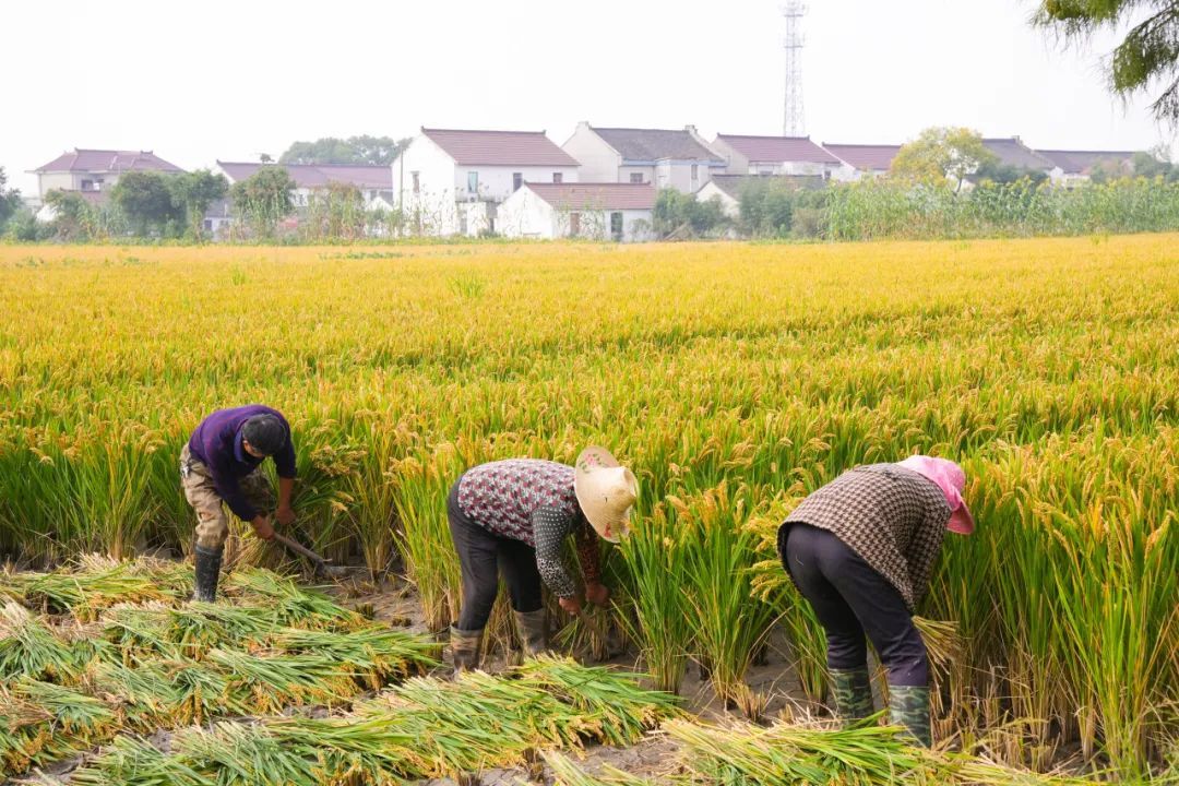 在自动收割机还不普及的时候,人们都是用镰刀割稻,收集成大小适宜的一束束,整齐地放置在地面上,等待脱粒。