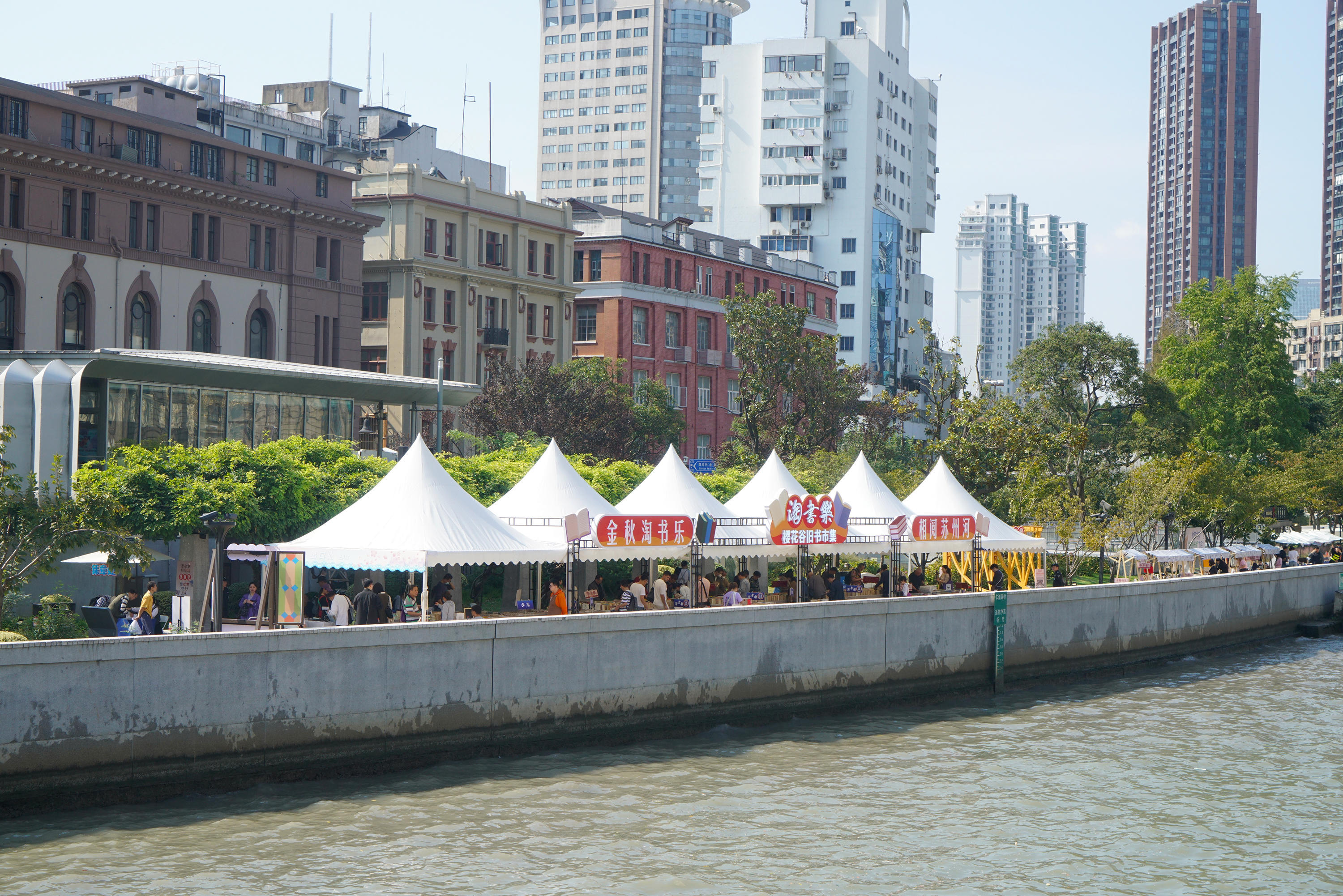 “美丽的苏州河景观与浓浓的书香氛围相映成辉,在这里既能淘书亦能观景……”一个月前,在南苏州路186号拉开帷幕的旧书市集,让爱书人重拾淘旧书的快乐。为了不辜负广大读者的厚爱与期盼,进一步推动上海全民阅读、播撒书香,打造苏州河畔文化“金名片”,10月24日至29日,由上海世纪出版(集团)有限公司、中共黄浦区委宣传部、黄浦区建设管理委员会、外滩街道党工委主办,上海图书公司承办的2023上海书展“淘书乐·樱花谷旧书市集”再次与市民相“阅”苏州河。
