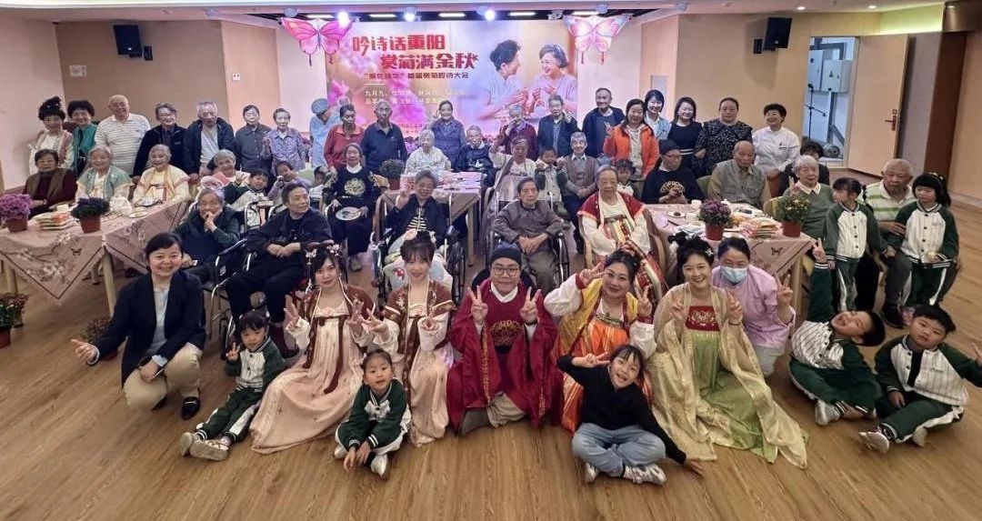 万里臻华颐养院举办了“吟诗话重阳,赏菊满金秋”重阳节主题活动。长者们身着汉服,共同赏菊,互相行礼、品茶、交谈,现场洋溢着浓浓的节日氛围。活动中,各位长者应景吟诗,如《咏菊》《重阳席上赋白菊》《九月九日》等,长者牟阿姨兴致高昂,现场挥毫作画,用笔墨描绘出了菊花的娇媚,长者朱阿姨即兴草体创作了书法作品,他们以书画留香,为节日增添气氛。