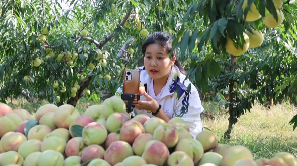 这几天,果农宋玉奎和村民们正在桃树下忙着拆袋、采摘,在桃树下来回穿梭;电商孟瑶则把直播间搬进了果园里,将冬桃采摘搬到线上,为消费者提供便捷的线上购买途径,进一步拓宽山亭冬桃网销途径。