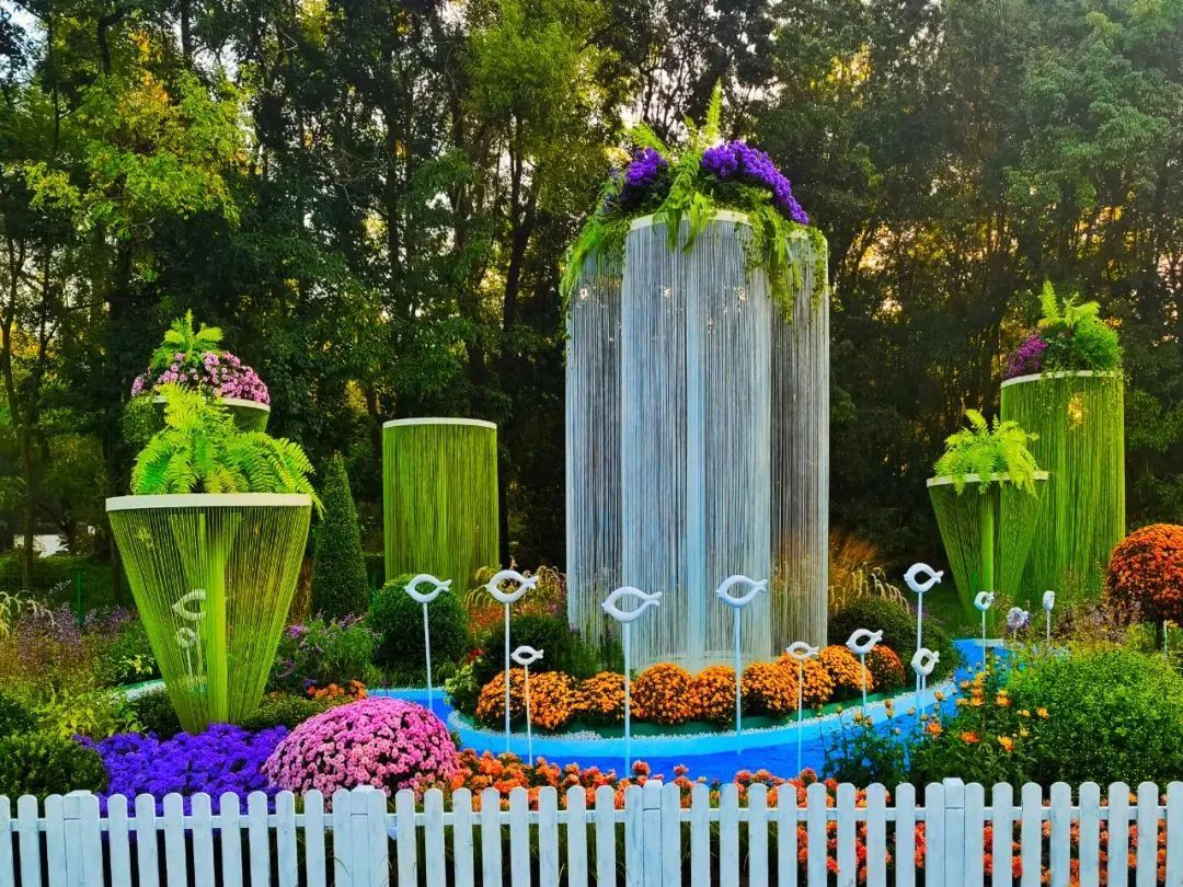 本次菊花展秉持节约办展、绿色环保的生态理念,在主题景观布置过程中减少了绿雕的使用,增加了竹、木、藤等生态材料的使用,结合花境植物,打造更具自然风格的菊花特色景观,传递人与自然和谐共生的生态文明理念。