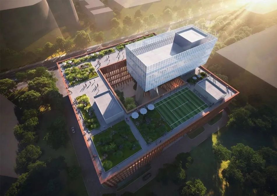 设计通过围合型的建筑形式,将外部混杂的空间与内部灵动的中庭空间隔绝开,为使用者提供安静惬意的生产研发空间。建筑顶部的玻璃展示造型,保证建筑通透性的同时,提供了优越的视野景观,项目预计2024年9月竣工。