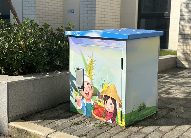 “你看这个箱子,现在变得又好看又有趣。”顺着村民赵仁华手指的方向,记者看到,一个画满了蓝天白云和金色稻田的信号箱置身于绿化带中,显得精巧可爱。对面房屋墙上挂着的配电箱也全面“换装”,戴着草帽的男孩在田地里忙着农活的场景变成了一幅装饰画。