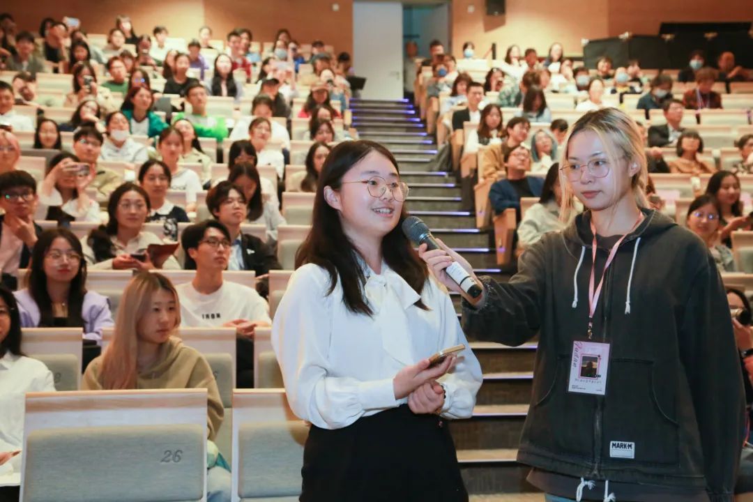 观众互动环节,同学们热情高涨,来自不同专业、不同年级的学生们纷纷举手,希望与主演们交流对舞剧与艺术的思考。