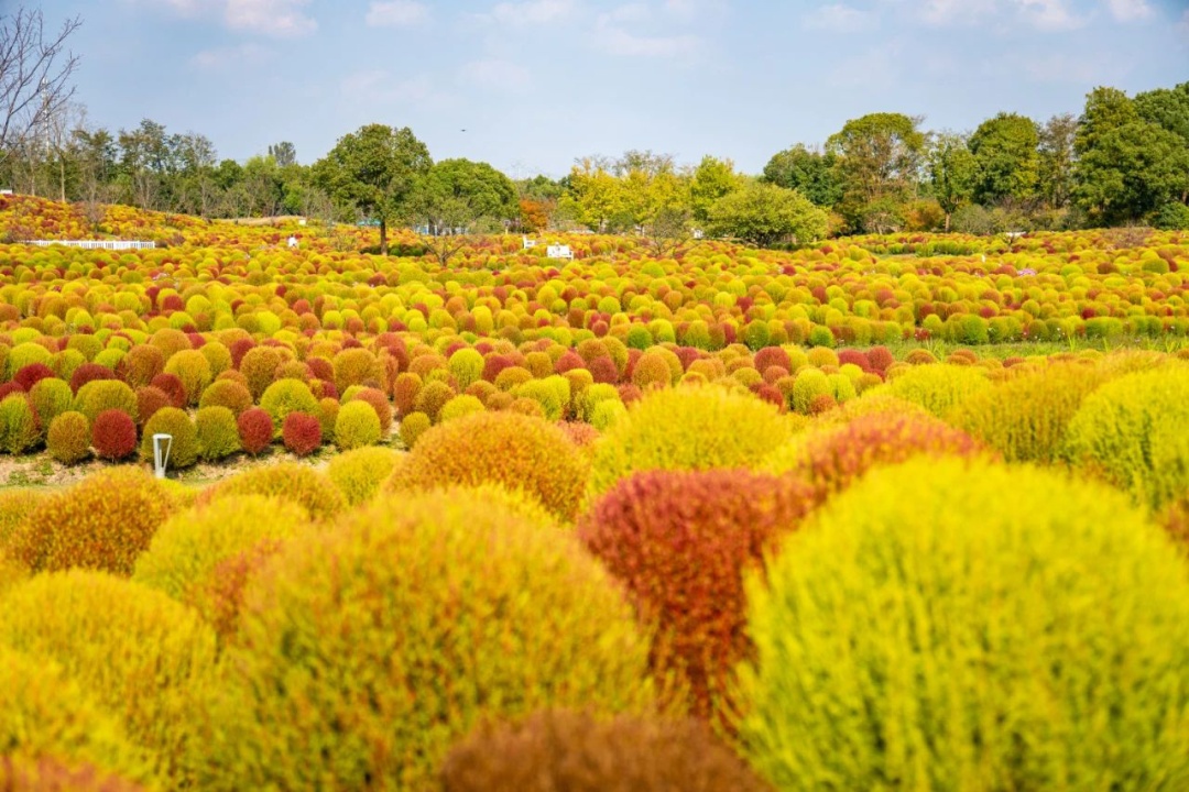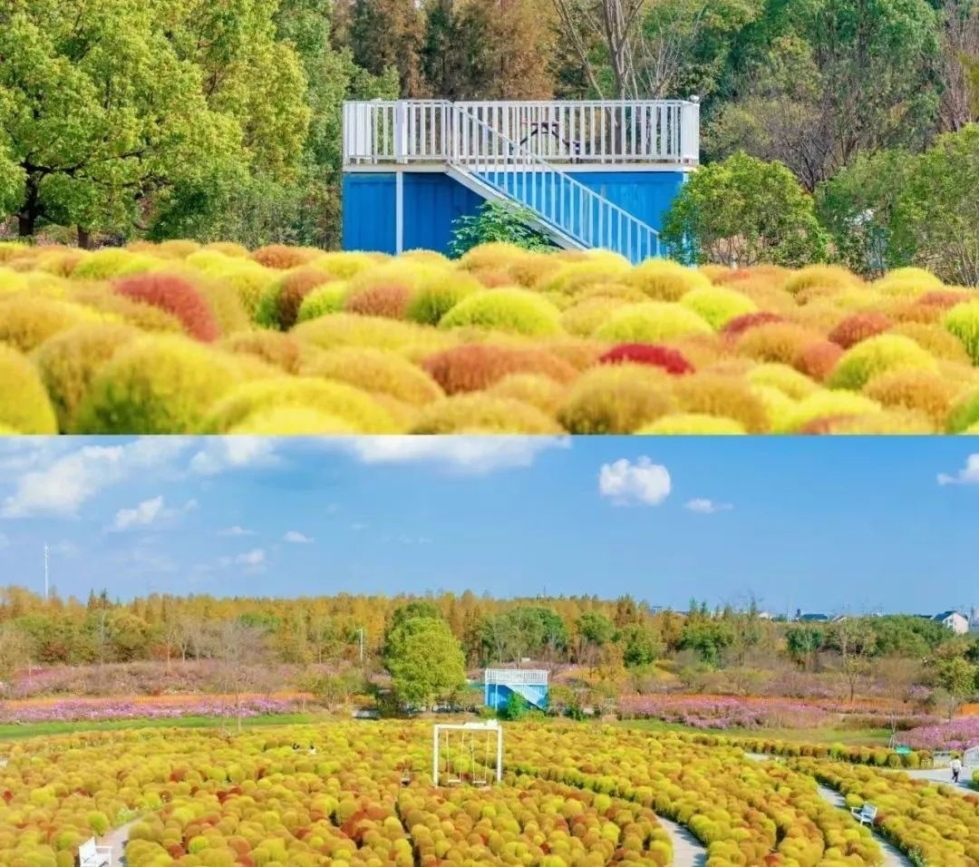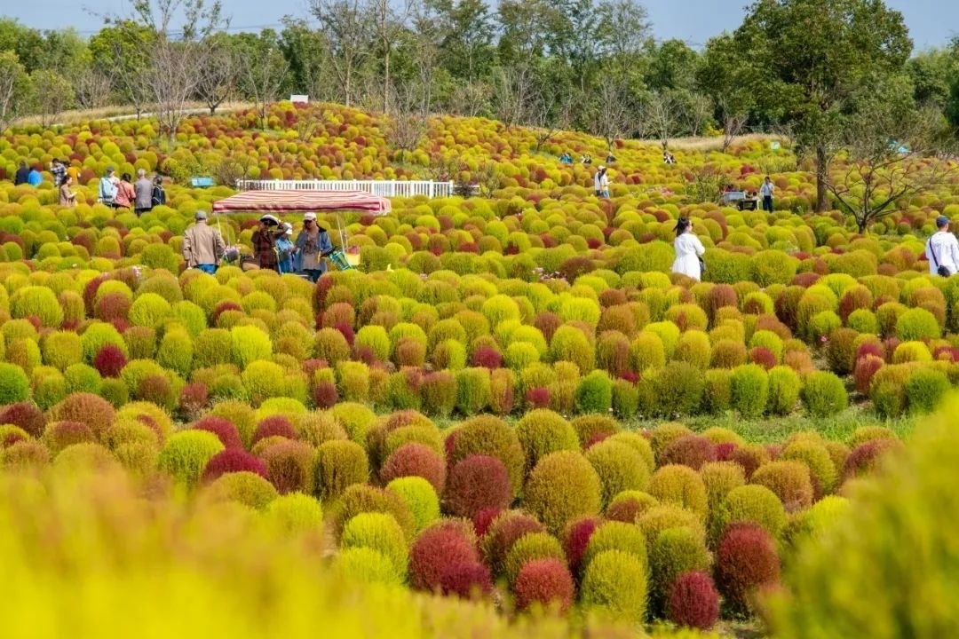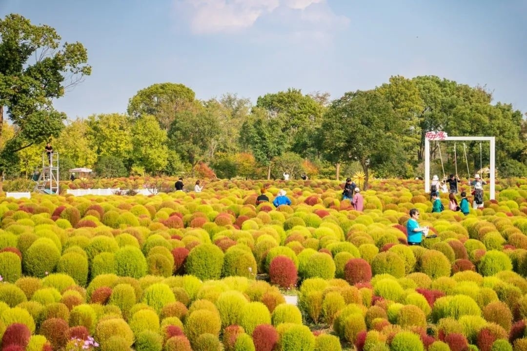这两天,白日里阳光明媚,不少市民都趁着好天气外出走走。由于昼夜温差较大,也让一些花草开始变色。在花开海上生态园,60万株地肤正处于变色期,美丽的景色吸引了不少游客前来打卡。