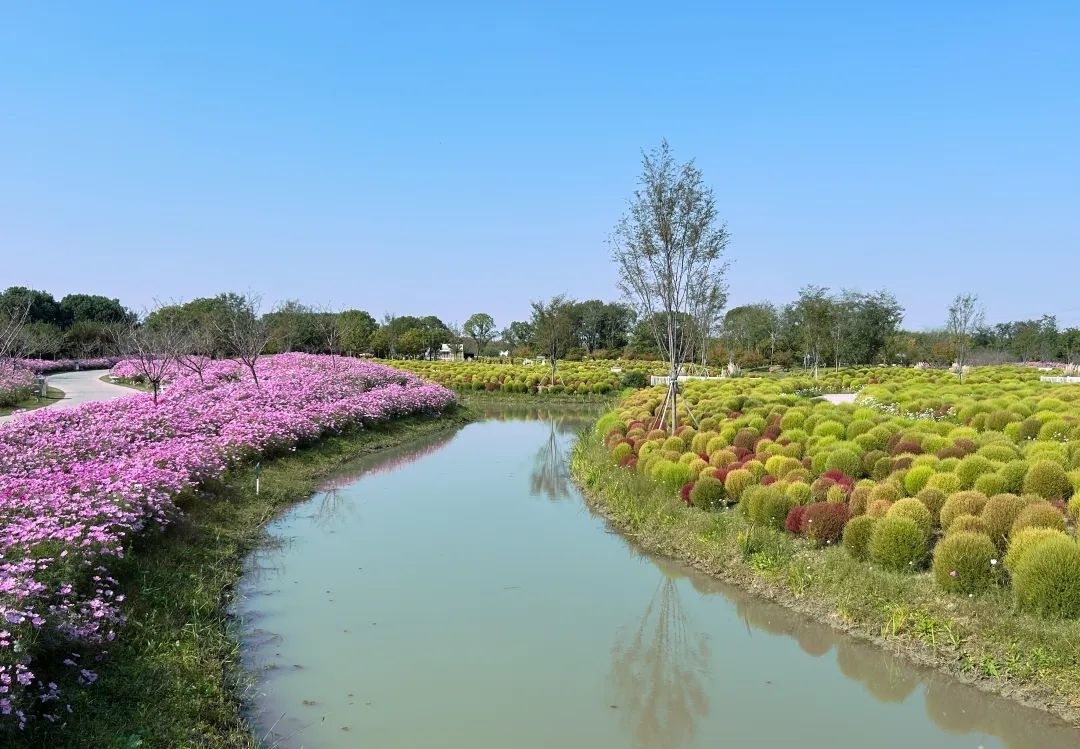 目前正是地肤变色后的最佳时期,而且这两天天气好,再往后如果下雨会影响它的观赏性,所以提醒游客要尽快来拍照打卡,趁着天气好抓紧游玩。与地肤隔水相望,还有大片粉白相间的格桑花海,花期预计到本月底。此外,目前花开海上生态园内还有醉蝶花、粉黛乱子草、墨西哥鼠尾草、百日菊等也都处于盛花期。