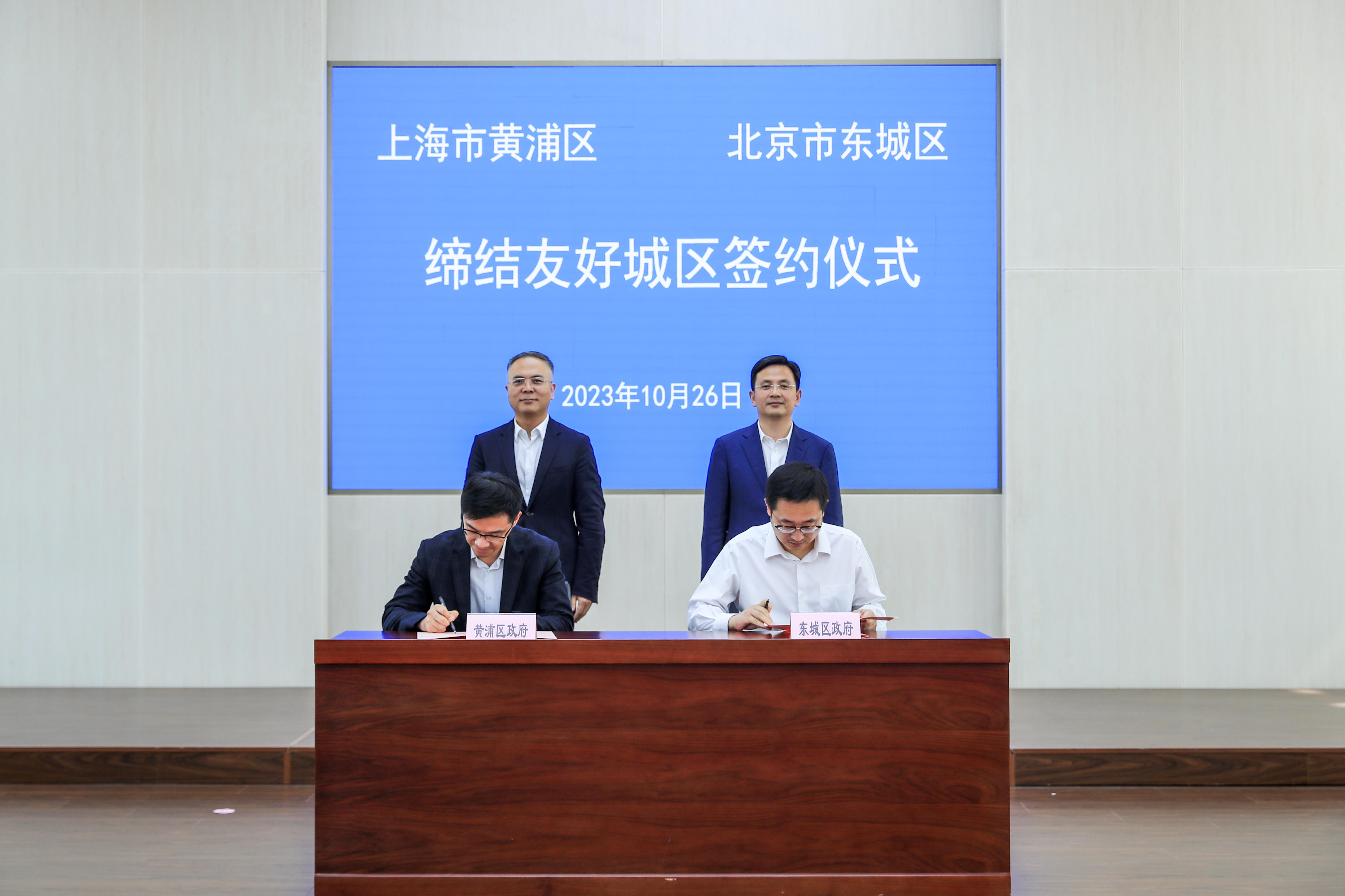 10月26日上午,上海市黄浦区人民政府与北京市东城区人民政府交流座谈会暨友好城区签约仪式举行。根据协议,双方将继续本着“平等互利、优势互补、密切合作、共同发展”的原则,积极搭建沟通交流的平台,持续开展多层次、多领域、多形式、多渠道的合作,把握机遇、共同努力,翻开携手奋进的新篇章,开创互利共赢的新局面。
