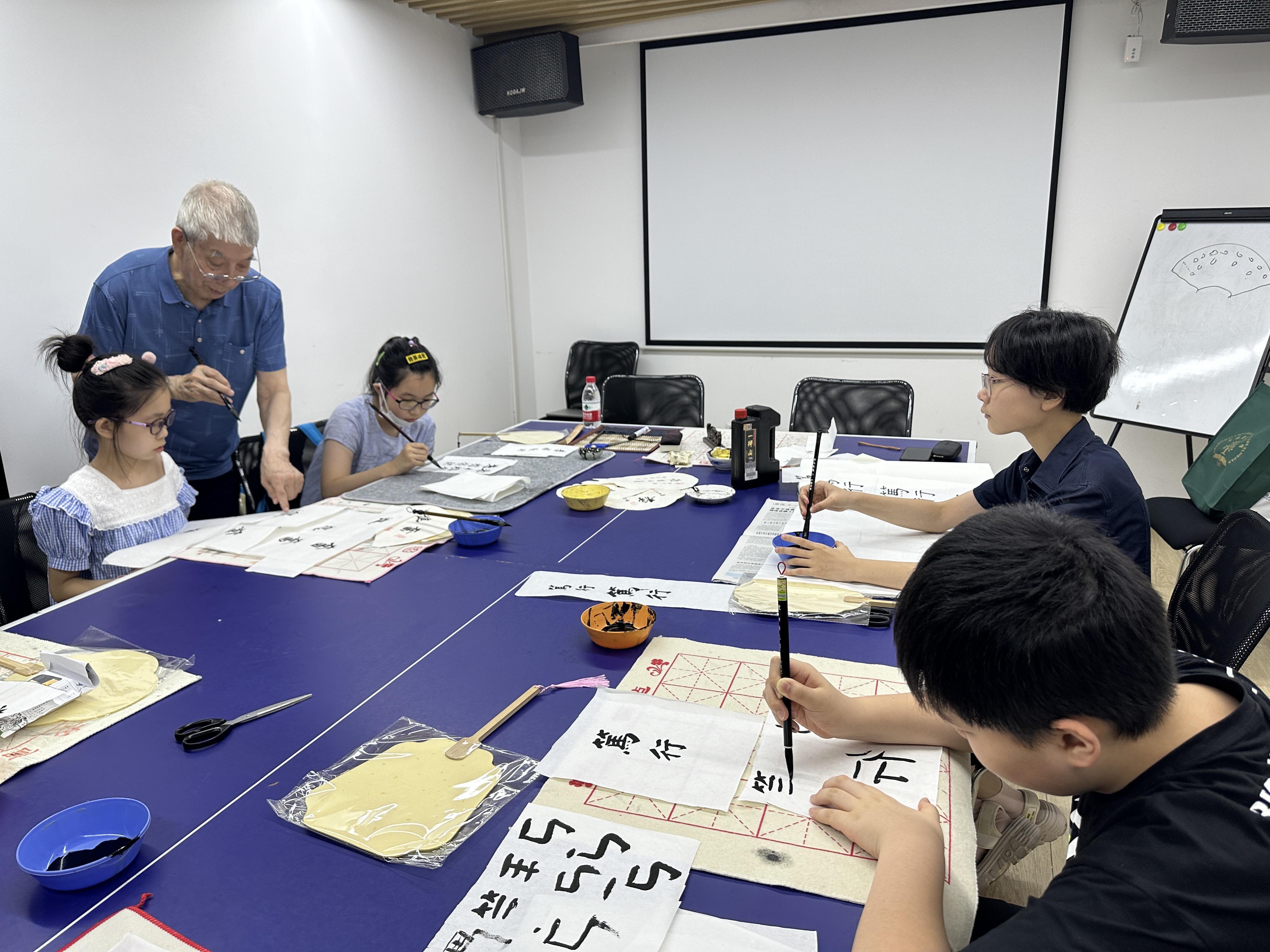 关于这点,今年已85岁高龄的张树京老人最有发言权,作为上海市书法家协会老年委员会的一员,由他在2017年在社区创办的书法教学班沿袭至今。居委干部介绍,教学班刚开始时的授课对象是社区老年人,随着时间的推移,小朋友们也加入了这一行列,“张老师教学的宗旨是弘扬传统文化,对居民完全免费,相比外面培训机构的速成,更注重横撇钩的教学,让学员从零基础开始学习书法。”
