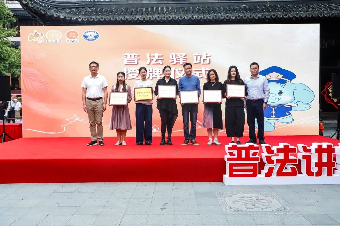 活动中,豫园商城游客服务中心、黄浦中心大厦党群服务站、上海共青团小哥服务站(黄浦站区)、豫园街道营商服务中心等6家新设立的“普法驿站”被正式授牌,6名普法宣传员也上台接过“沉甸甸”的聘书。