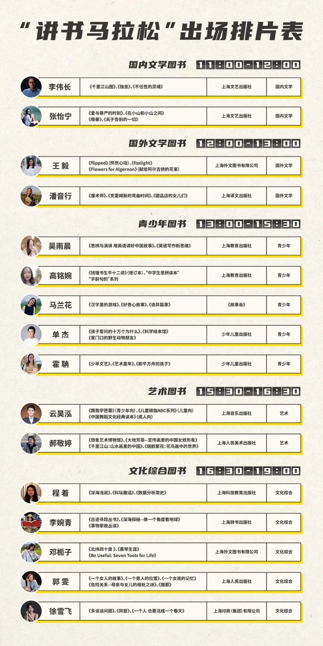 现场参加全部讲书版块的读者可参与抽奖,有机会获得:世纪朵云价值500元的佰朋卡1张+上海人民出版社文创启明马灯1个+上海文艺出版社2024丰子恺漫画日历1本。每参加一个时段的讲书活动即可得到1张明信片,集齐5张门店已盖章画面不同的明信片,可获得抽奖资格。