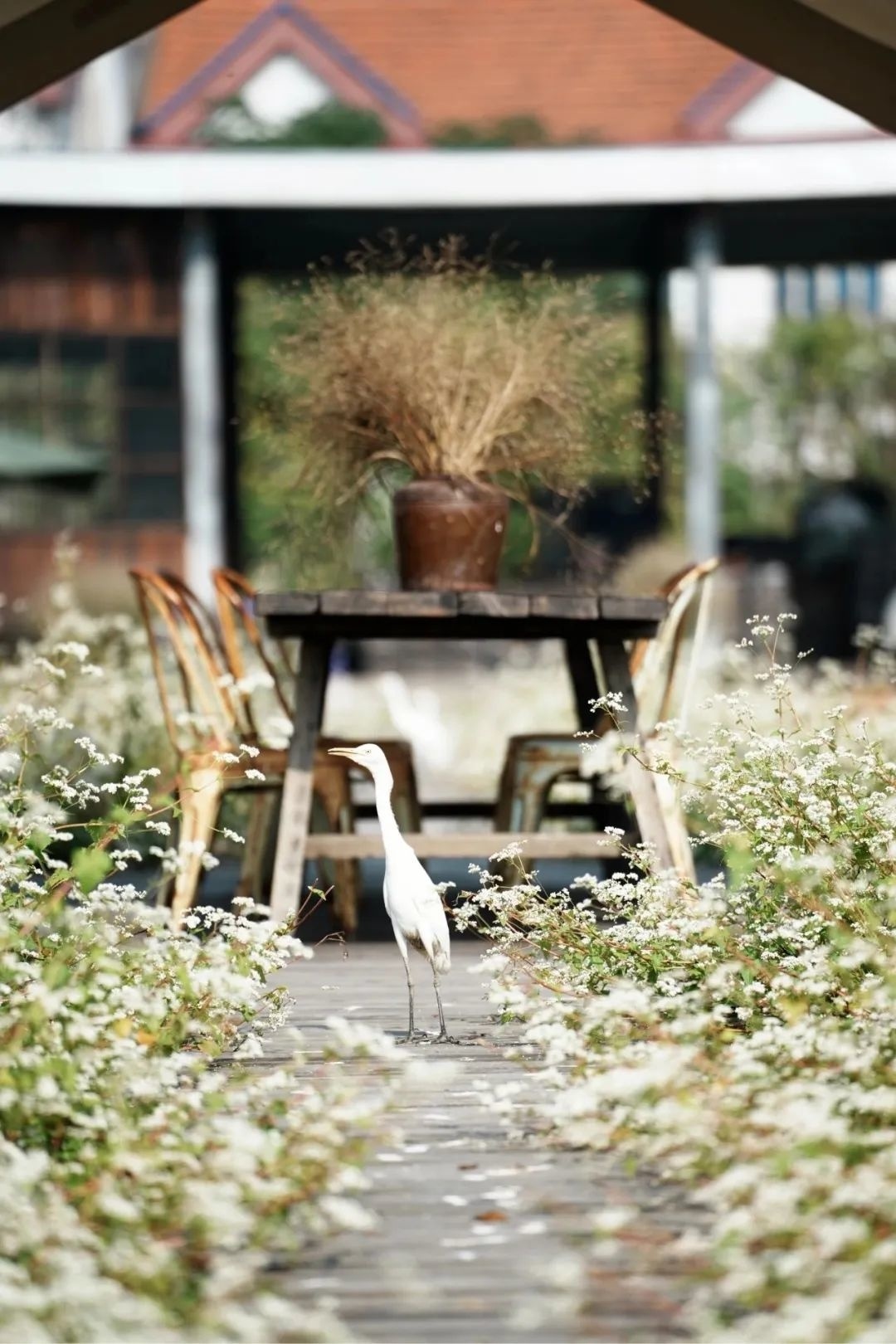 在这片自带滤镜的白色花海中,不需要特意摆拍,简单随意的一个动作就能拍出唯美的大片。