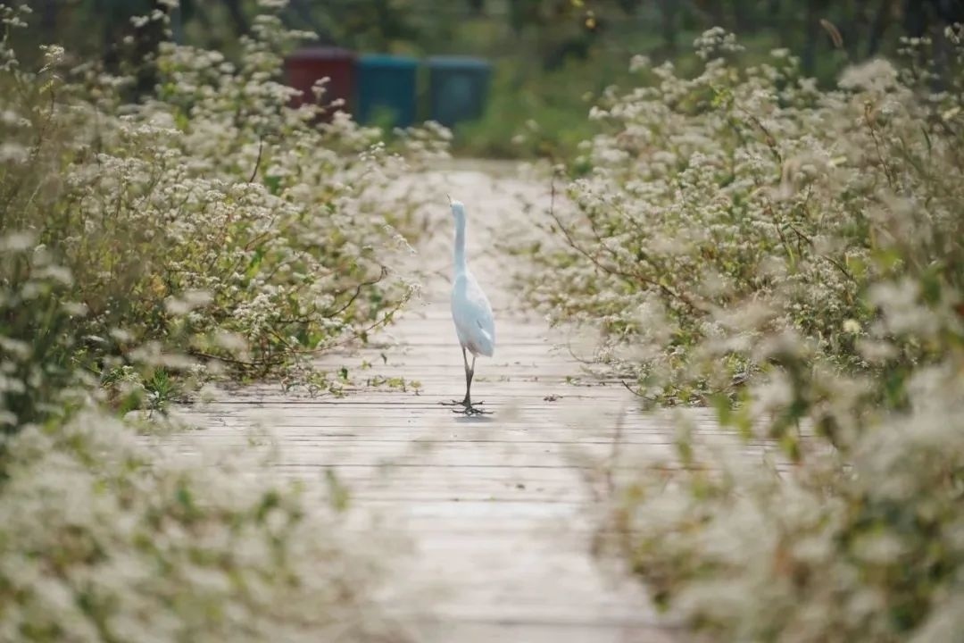 走进香草园,田园的清香扑鼻而来,抬眼便被走道两边郁郁葱葱的苦荞花所吸引。白色的小花开成一片,形成一个花道,蜜蜂和蝴蝶在花丛中飞舞,时不时还有白鹭在此踱步。