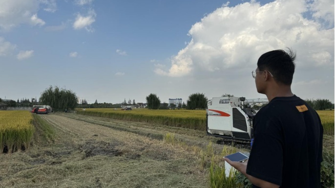 近日,宝山区“无人驾驶全程化收割”的演示观摩会在远景村的水稻种地基地里展开,现场“无人农机”大显身手,数亩水稻顷刻收割完毕。“只要规划好路线,按一下手机的遥控器,一键就可以控制收割机开始无人收割。”操作人员说。无人驾驶收割机在接收到粮仓满了的信号后,通过北斗卫星定位,行驶至运输车旁,进行自动吐粮。这些设备通过精准导航定位、自动路径跟踪等技术,实现全程无人化作业。从常见的“镐锄镰犁”到智能化的“金戈铁马”,农业正在从传统的农业生产模式逐步走向信息化、数字化、无人化。通过信息技术在农业农村的应用,构建未来智慧农业、智慧农村新模式,改善农产品的品质、降低生产成本,帮助农民实现“会种地”到“慧种地”,为广大农民提供大有可为的广阔舞台。
