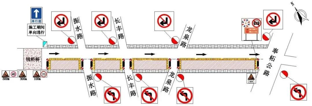 为提高道路安全性及改善行车舒适性,区交通建设管理中心拟对金钱公路(钱桥桥-奉柘公路)段实施中修。 金钱公路(钱桥桥-奉柘公路)段计划施工时间:2023年10月28日—12月31日 施工顺序和车行路线:采用半幅由北向南单向通行的方式进行施工(公交车双向正常行驶)。 施工顺序及行车路线见下图: 第一阶段 第二阶段 南向北车辆绕行图 为确保过往车辆和行人安全,敬请过往车辆和行人严格遵守道路交通安全法律法规规定,按照现场交通标志指示通行,并服从现场管理人员的指挥和疏导。 请市民提前做好出行规划,因工程施工带来的不便,敬请谅解和支持。