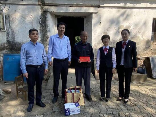 情暖金秋,丹桂飘香。每年的农历九月初九是我们中华民族的传统节日——重阳节,为弘扬中华民族尊老爱老敬老的传统美德,江南农村商业银行遥观支行党支部走进遥观镇养老院和遥观勤新村,开展“情暖金秋,爱在重阳”慰问活动。