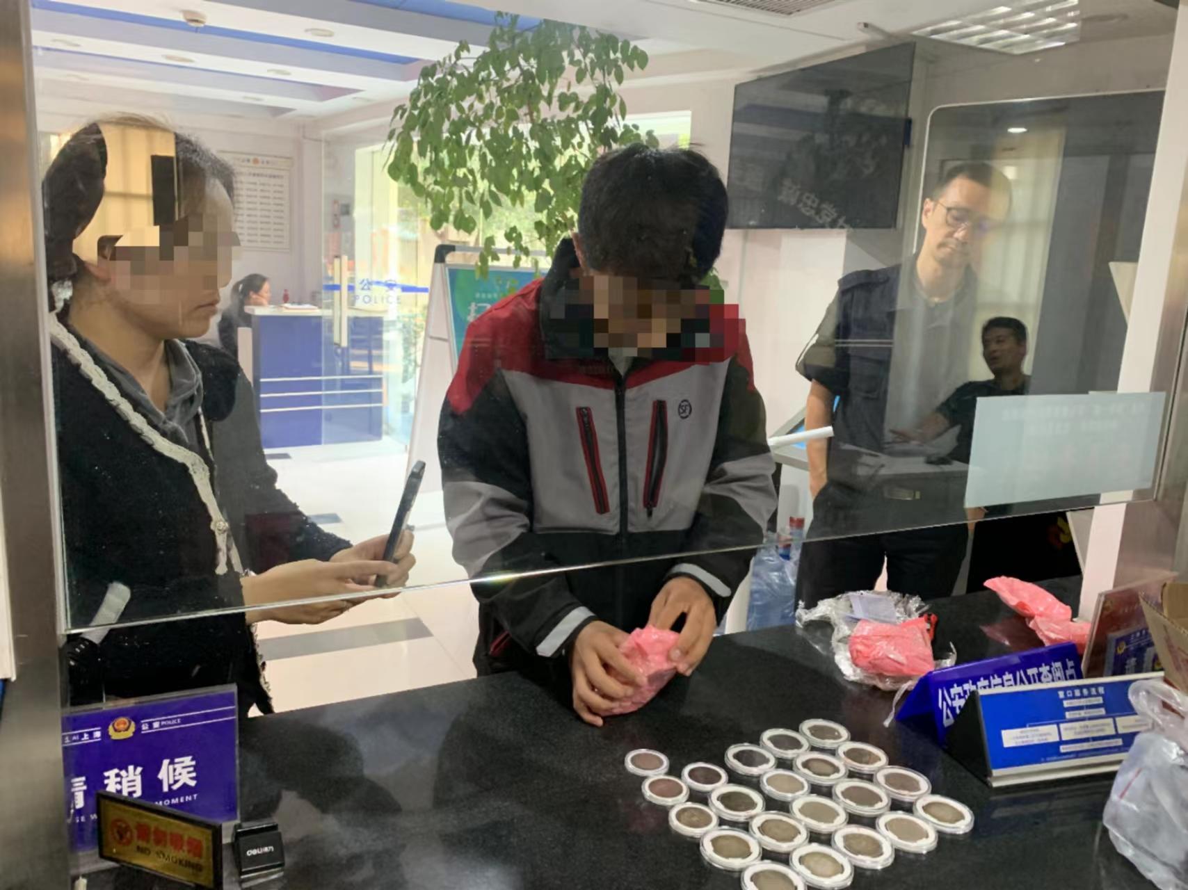 “我们打开来一看,里面有大大小小的银元38枚,每一枚银元他都用精致的收藏盒装好,所以一看就不是仿冒的。我们也很重视,马上通过里面的快递单联系到寄件人。寄件人也表示很惊讶,他说这么贵重的东西怎么会掉了,他是特地做了保价寄来上海做价值评估的。”黄浦公安分局人民广场治安派出所综合窗口警长邱云海告诉记者。
