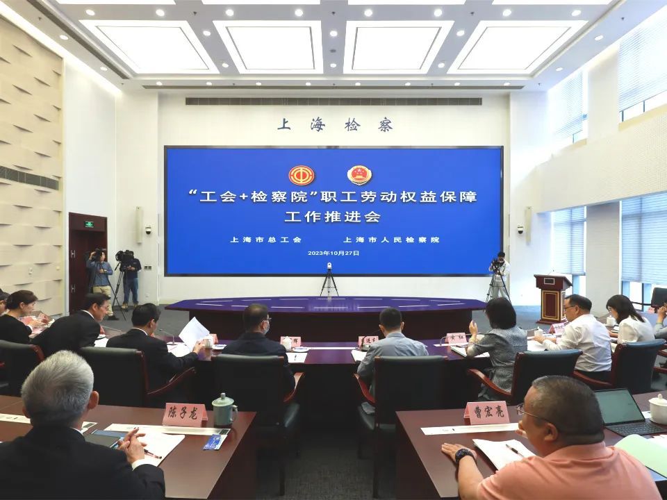 今天(10月27日),市检察院与市总工会联合召开“工会+检察院”职工劳动权益保障工作推进会,并签署《关于建立“工会+检察院”职工劳动权益保障协同工作机制的意见》(下称《意见》),双方将发挥各自职能优势,推动实现检察机关法律监督与工会劳动法律监督双向赋能,着力引导各类用人单位依法规范用工,共同保障职工劳动权益。最高人民检察院、全国总工会、市检察院、市总工会等相关负责人出席会议并讲话。