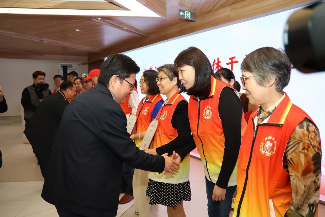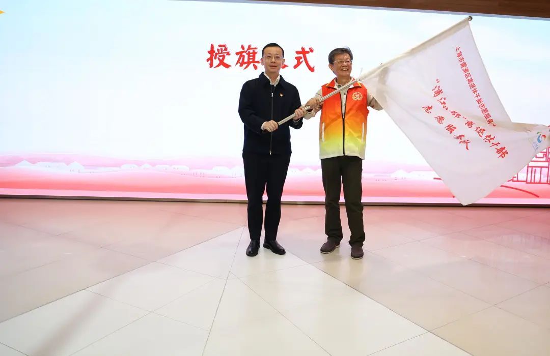 会上举行了“浦江乐邻”离退休干部志愿服务队成立仪式,李铭向服务队授旗。今年年初,区委老干部局在原有“1+7+10”志愿服务体系基础上,经过充分调研,在相关委办局和街道的大力支持下,正式启动了一支新的“浦江红”系列团队——“浦江乐邻”离退休干部志愿者服务队的筹建,以进一步推进离退休干部助力社区治理新模式,召集一批有业委会工作经历、热心社区事务的老同志,通过组织他们理论学习、经验交流、提升能力,在助力社区治理领域深入探索“枫桥经验”的黄浦实践。